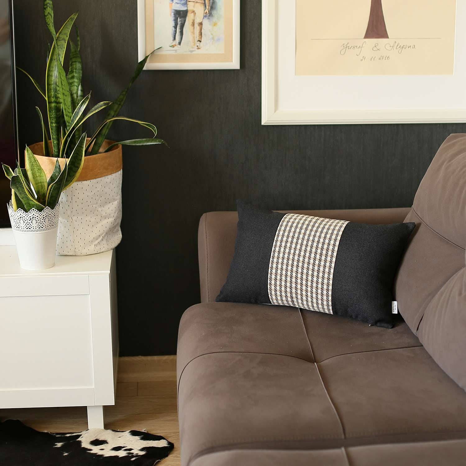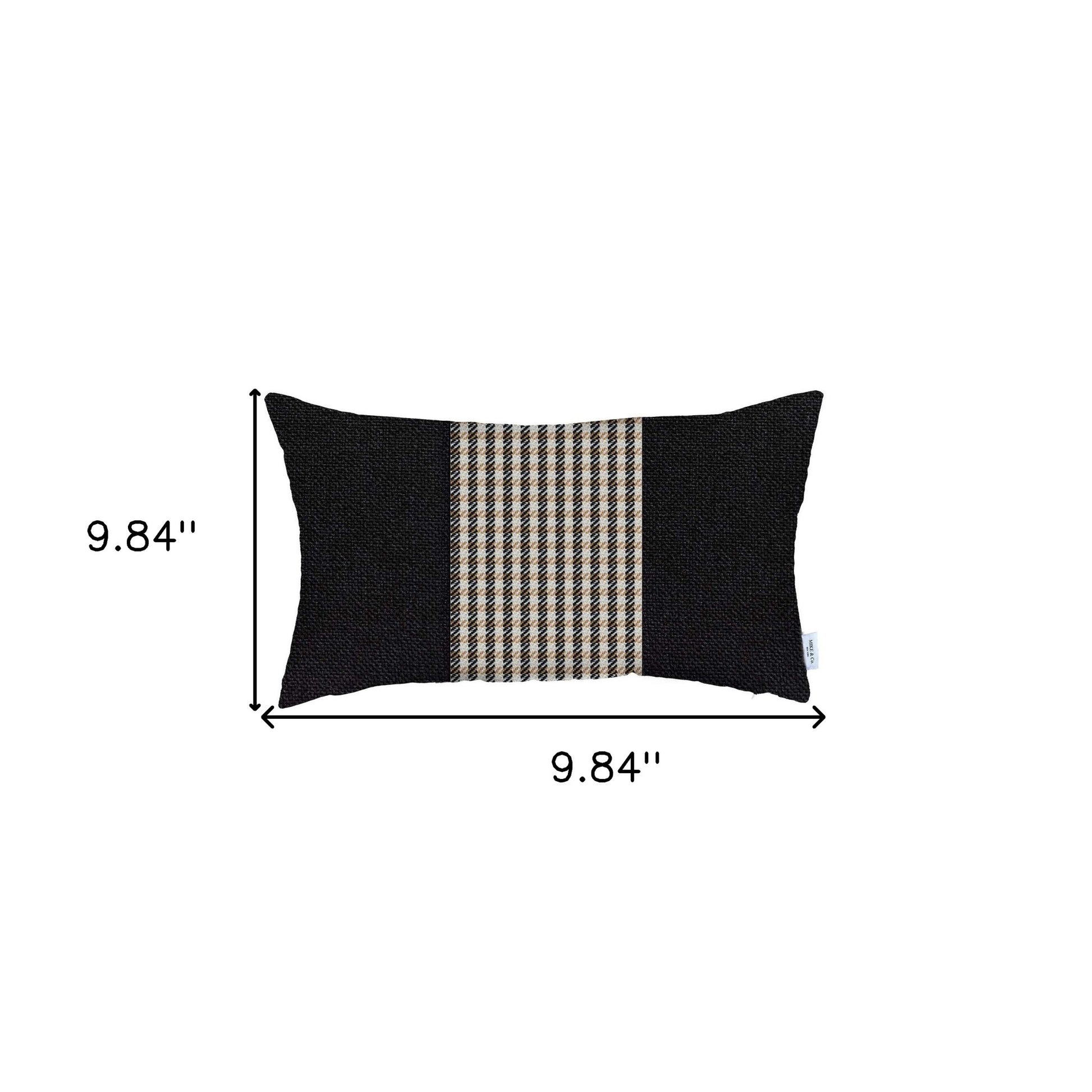 12" X 20" Black And Brown Houndstooth Zippered Handmade Polyester Lumbar Pillow Cover