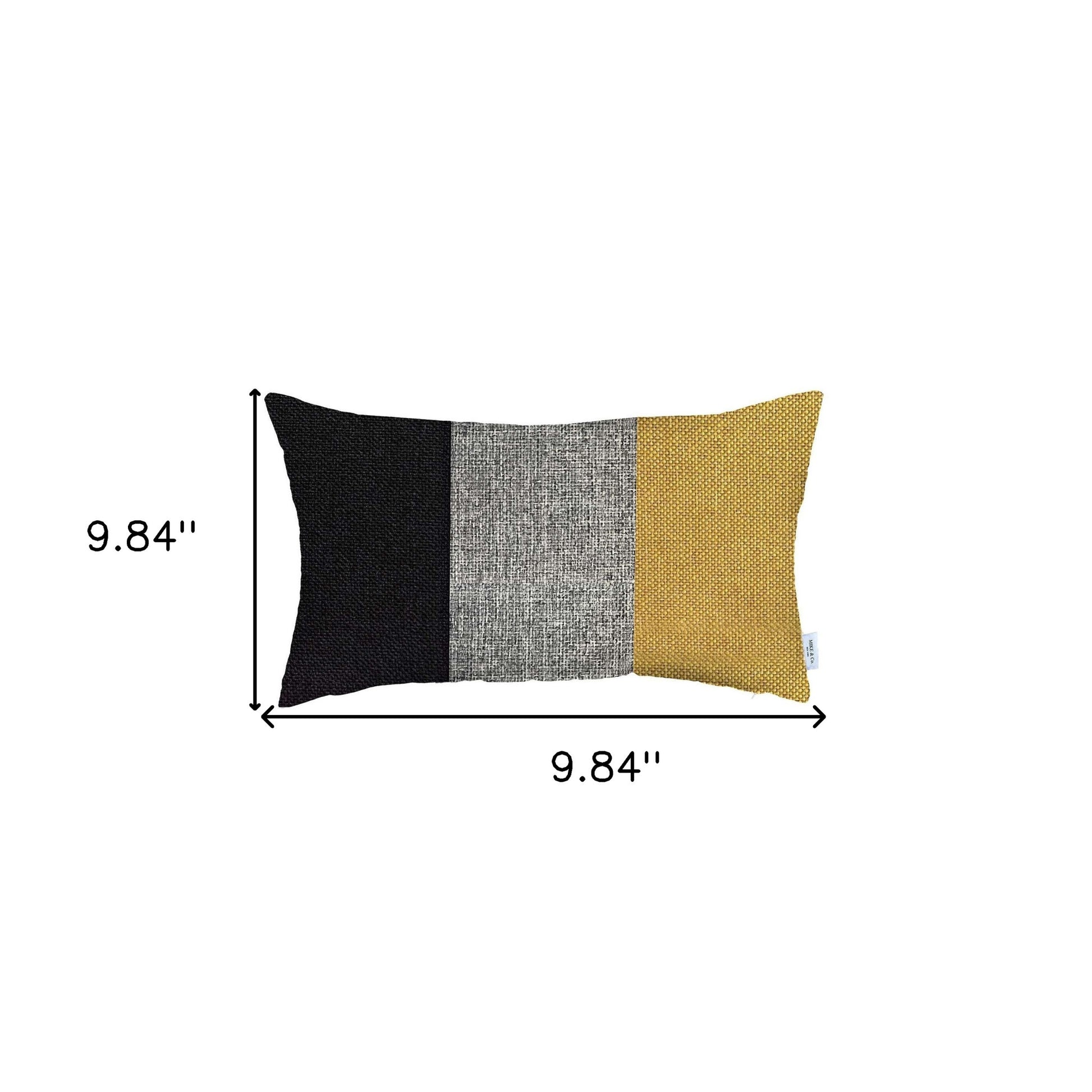 12" X 20" Black And Yellow Geometric Zippered Handmade Polyester Lumbar Pillow Cover