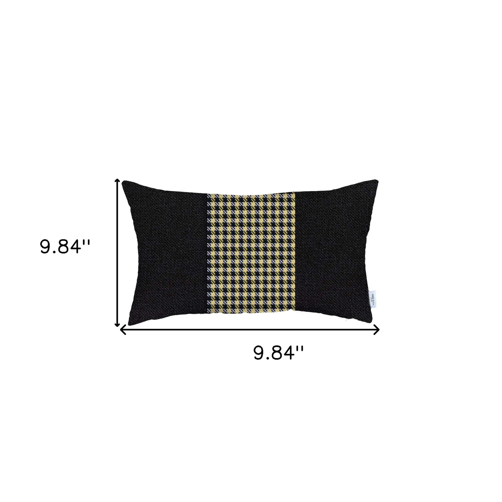12" X 20" Black And Yellow Houndstooth Zippered Handmade Polyester Lumbar Pillow Cover