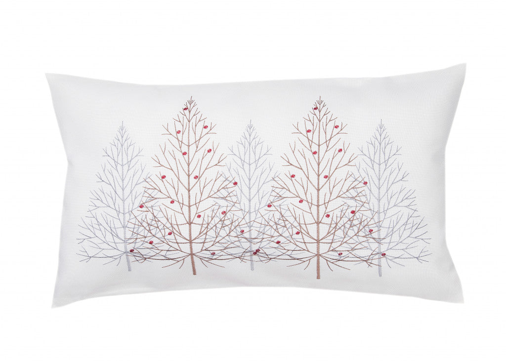 12" X 20" White Forest Christmas Trees Polyester Zippered Pillow With Embroidery