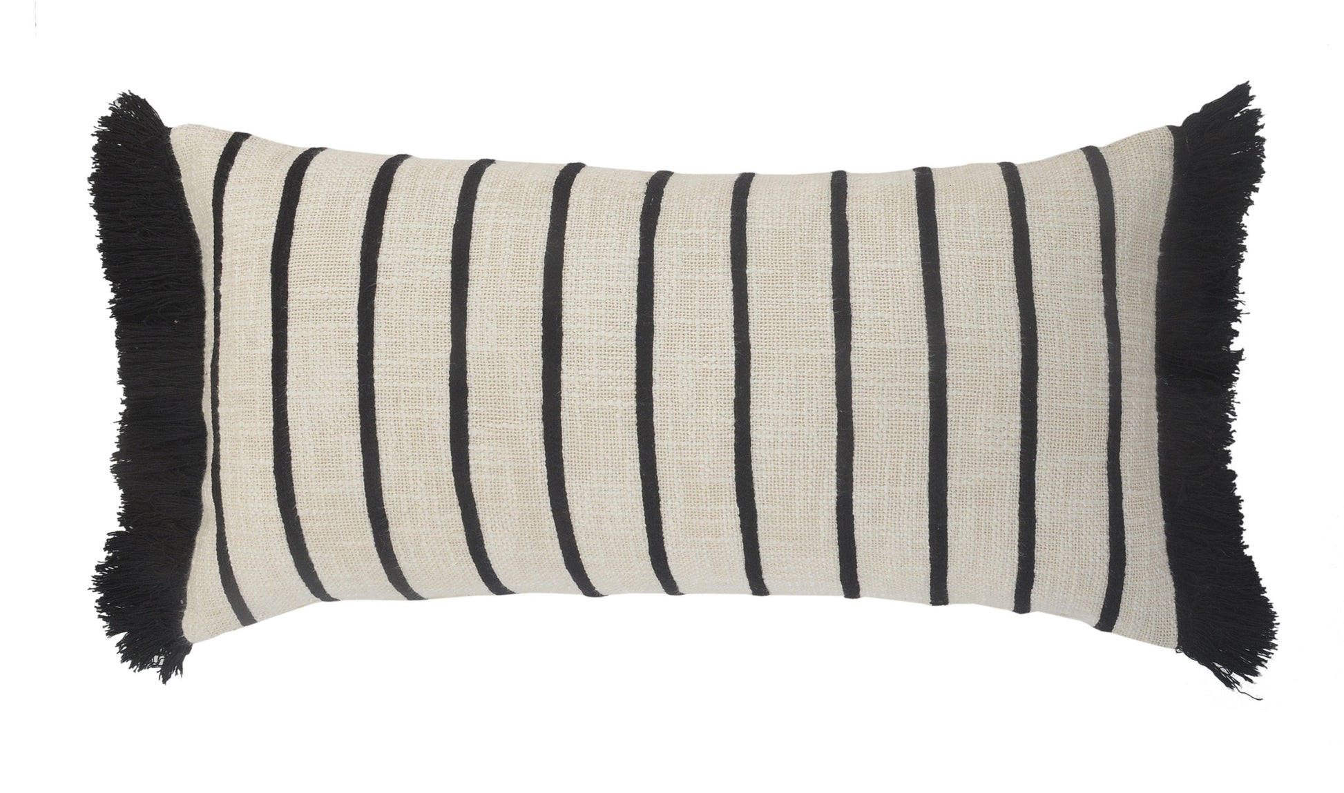12" X 28" Ivory And Black 100% Cotton Striped Zippered Pillow