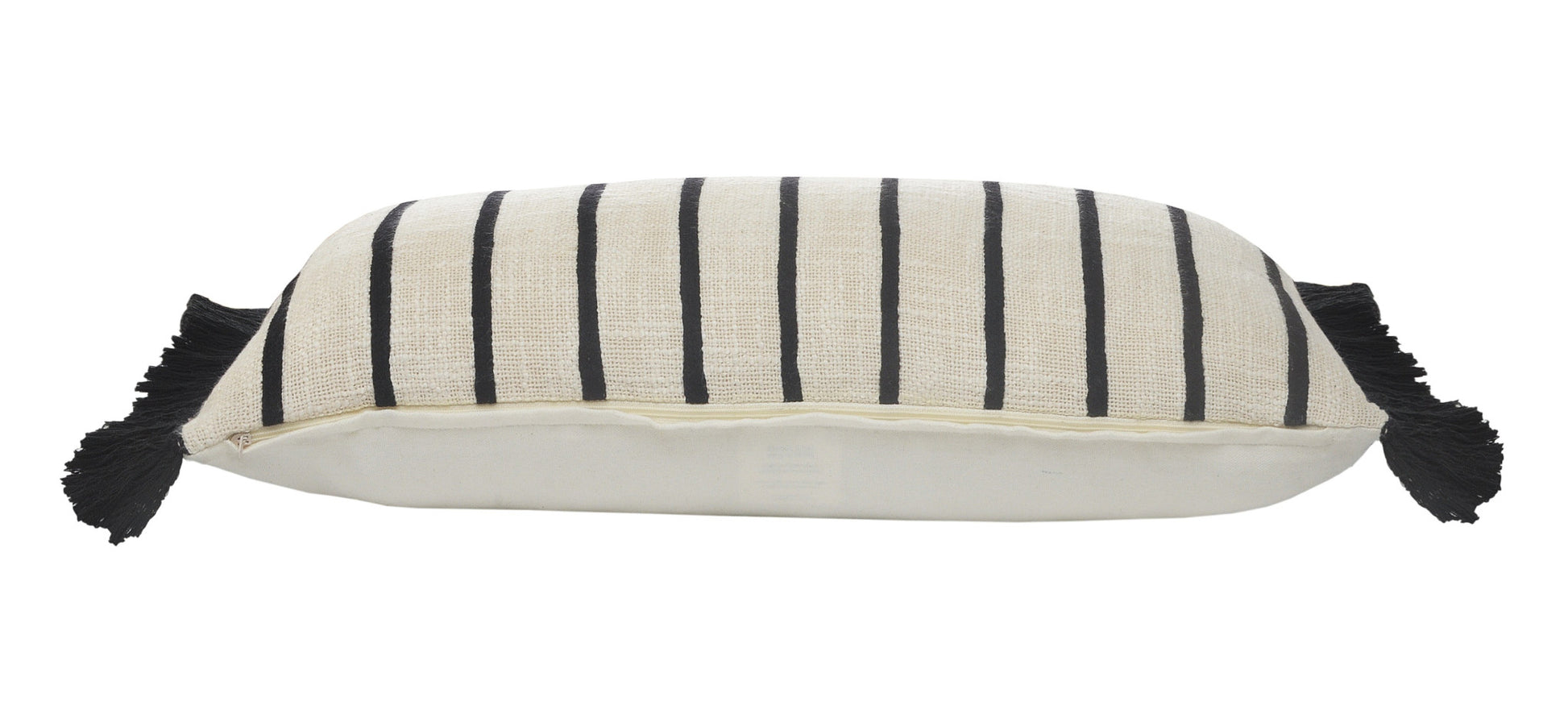 The 12" x 28" ivory and black 100% cotton striped zippered pillow is the perfect decorative accessory for your home. This ivory and black hued piece represents quality construction, expertly made from premium 100% cotton that is not only long lasting but super soft to the touch as well. Decorative throw pillows not only add color and dimension to your space but can be comfy and supportive when you are lounging and cuddling as well. A great decorative accessory for your favorite chair, to accent your sofa, or to use as part of your bed ensemble. 12" H x 12" W x 28" D