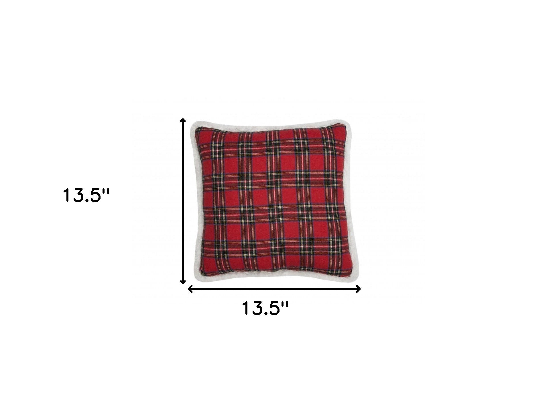 13.5"x13.5" Red and Black Christmas Polyester Plaid Pillow
