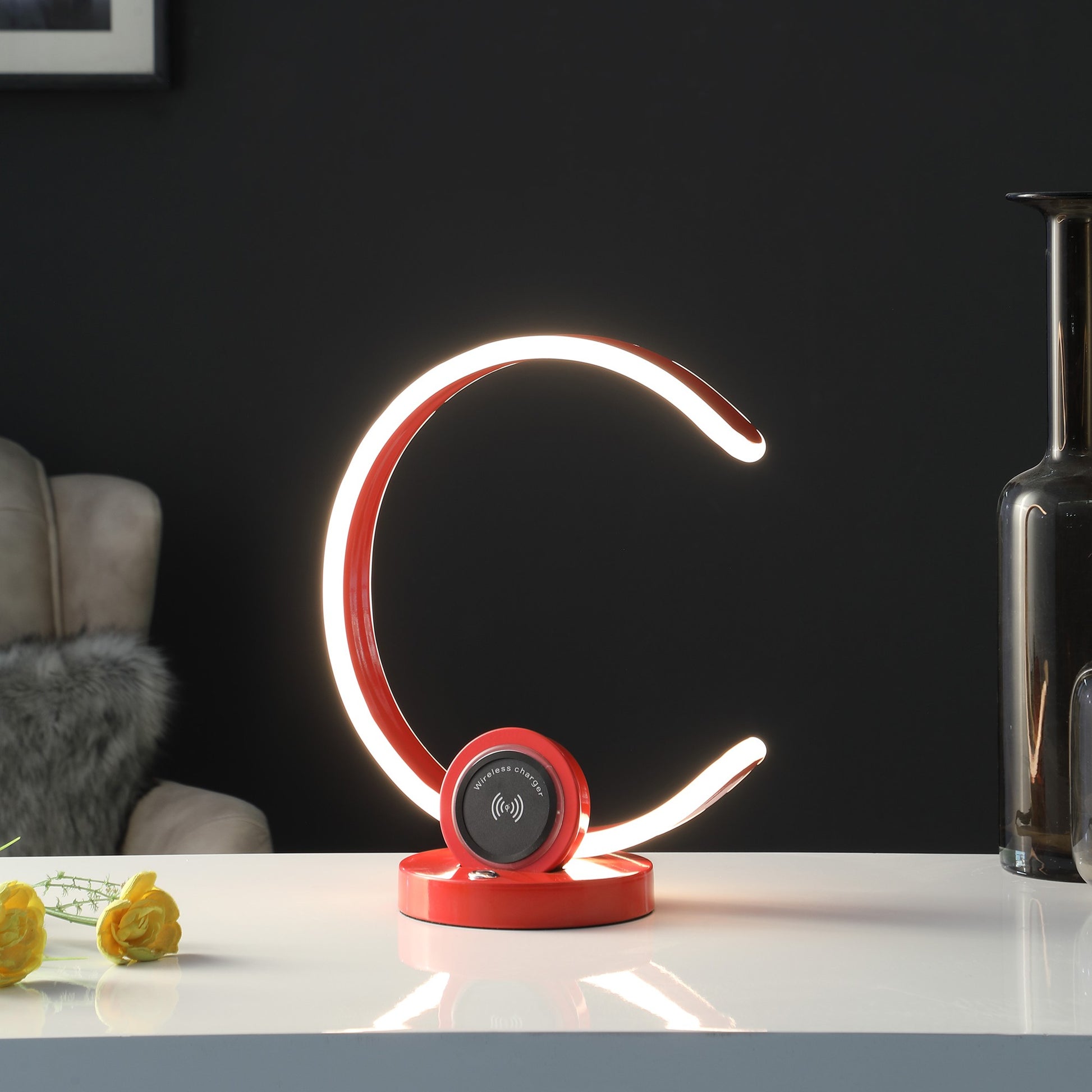 13" Red Contempo C Shape LED with USB Desk or Table Lamp