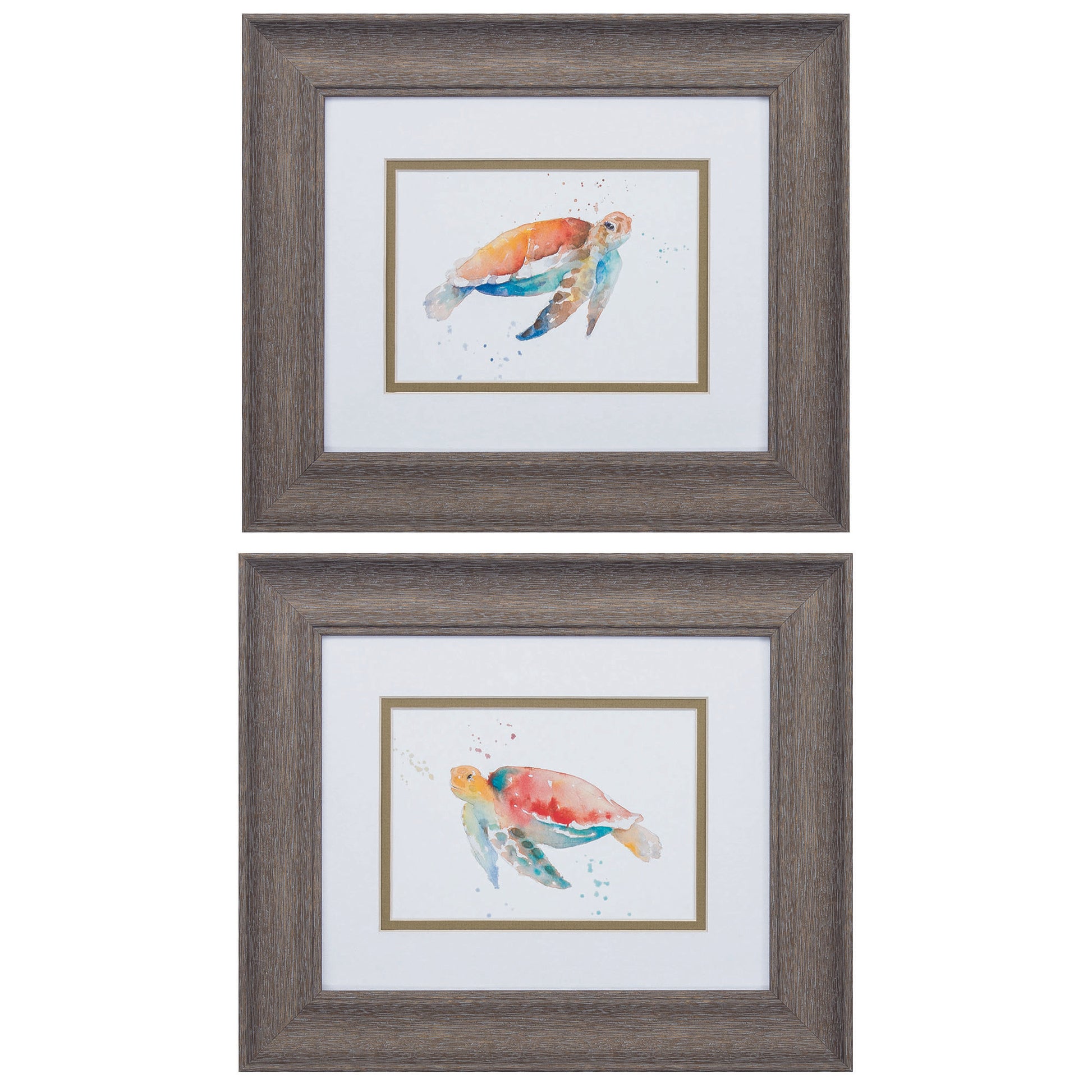 13" X 11" Distressed Wood Toned Frame Sea Turtle (Set Of 2)