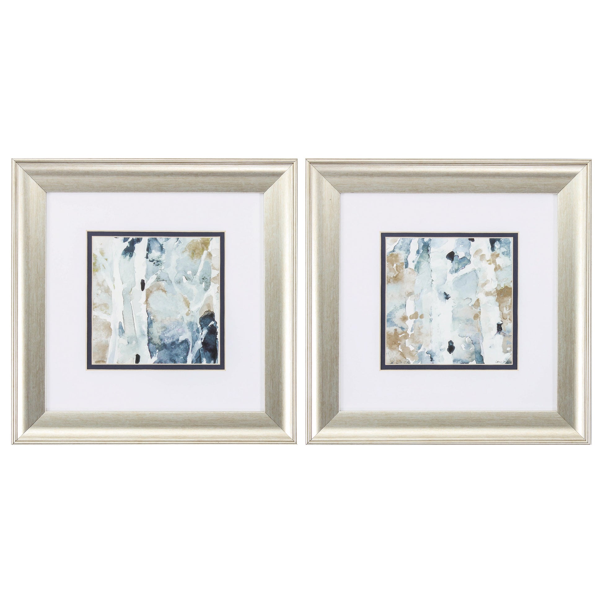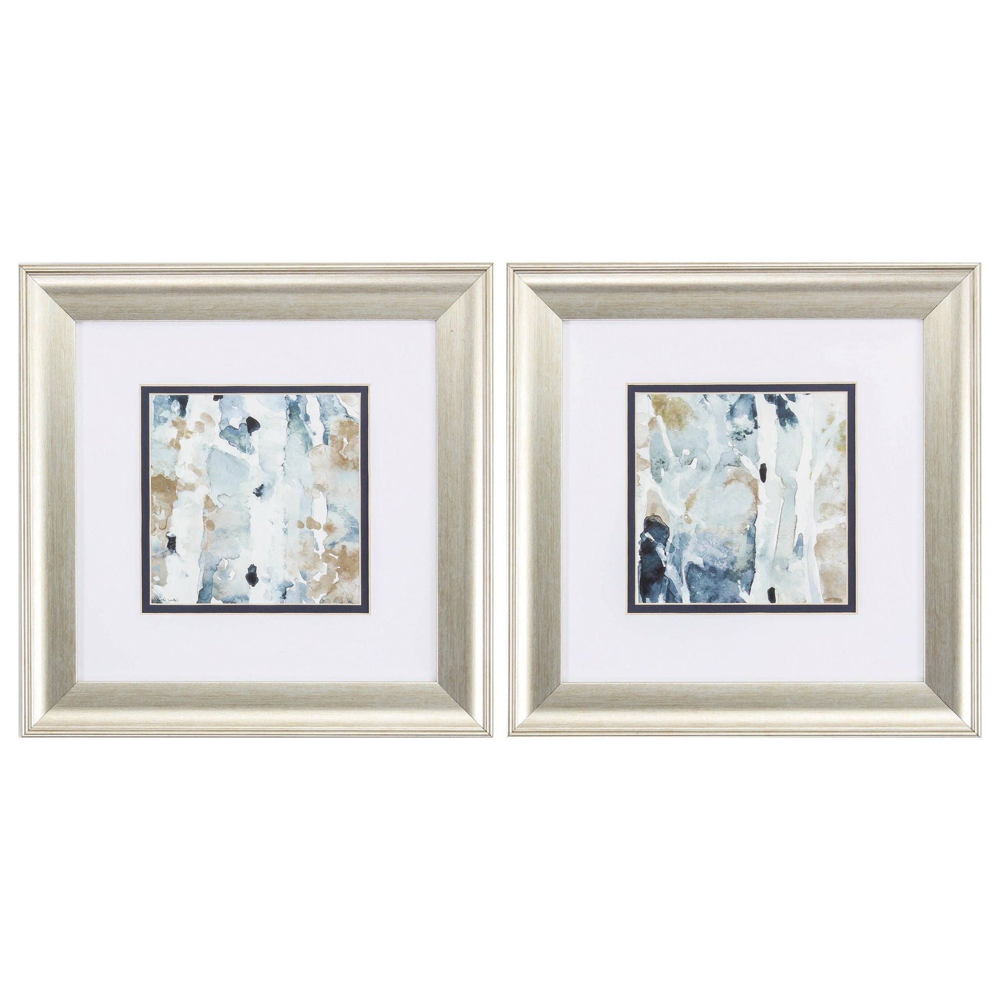 13" X 13" Brushed Silver Frame Blue Watercolor (Set Of 2)
