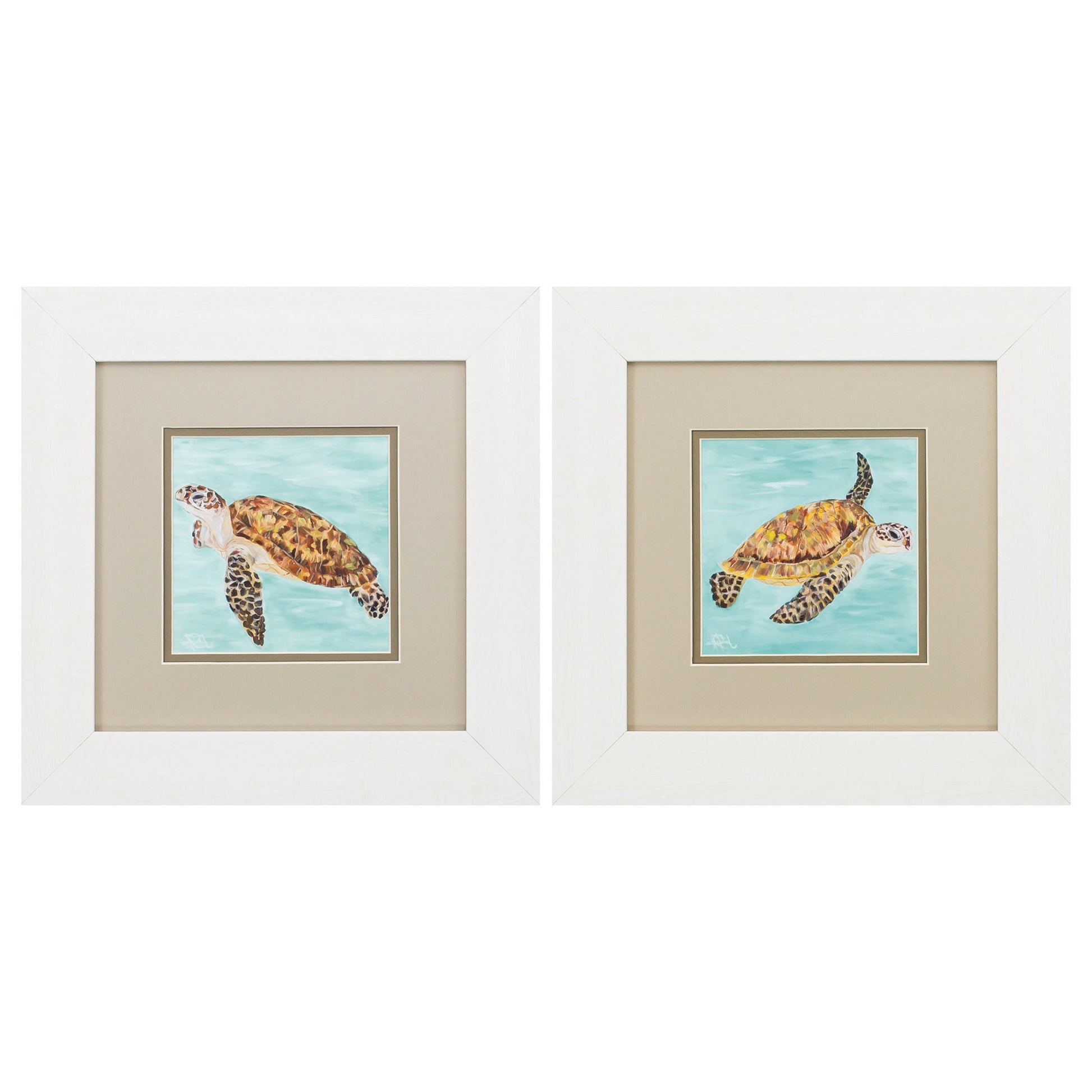 13" X 13" White Frame Calm Swim (Set Of 2)