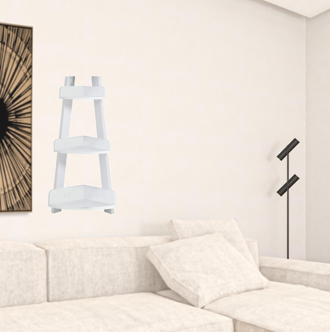 13" X 16" X 33.25" White Particle Board Hollow Core Corner Shelf