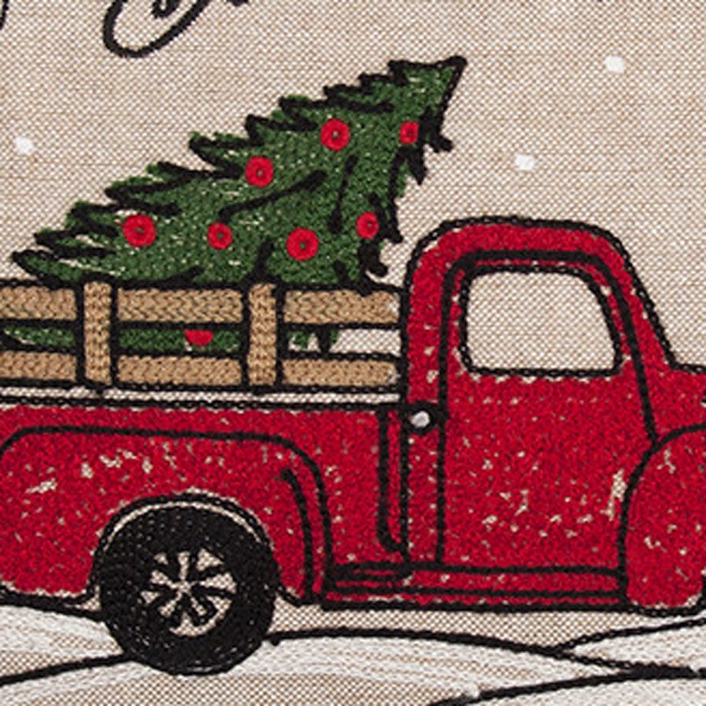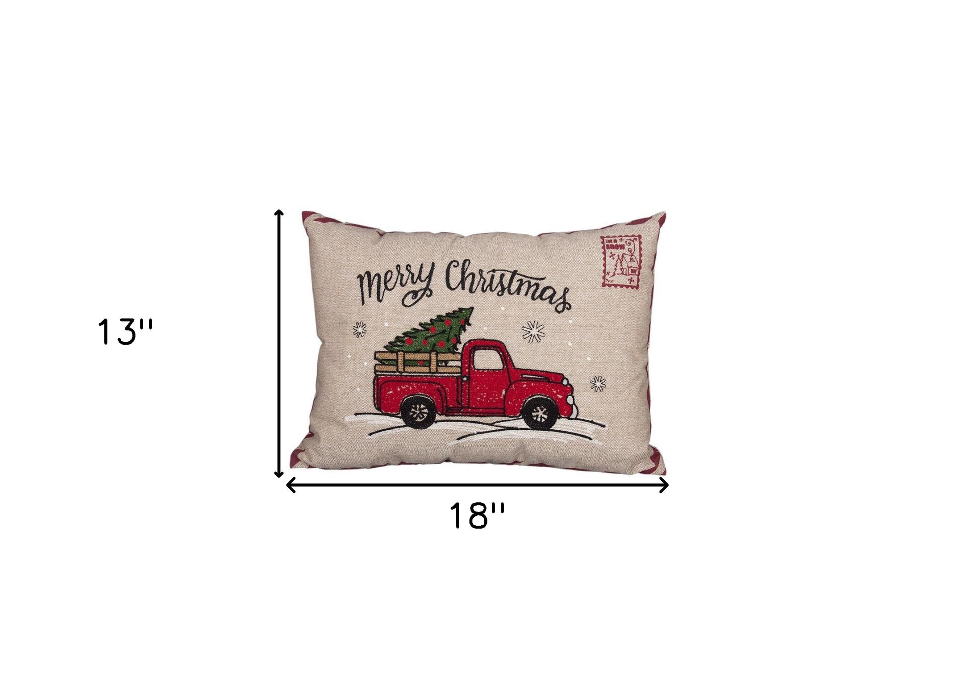 13" X 18" Beige and Red Christmas Holiday Van Polyester Zippered Pillow
