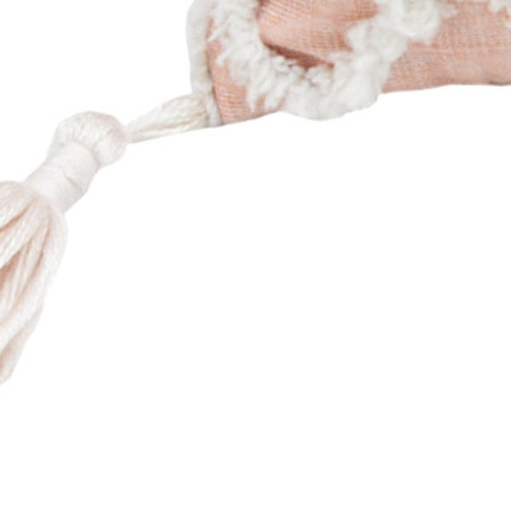 13" X 18" Beige And White Abstract Zippered Polyester Throw Pillow With Tassels