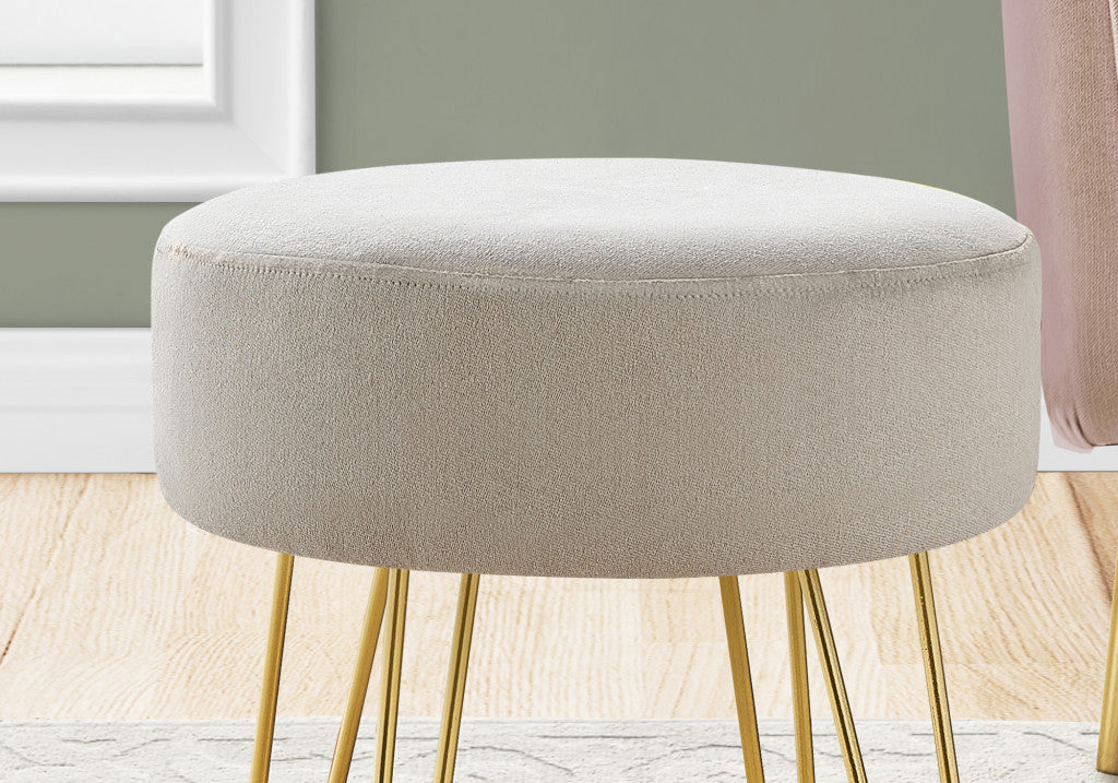 | Keywords | beige velvet gold round ottoman, velvet gold round ottoman, gold round ottoman, 14" beige velvet gold round, 14" beige velvet |