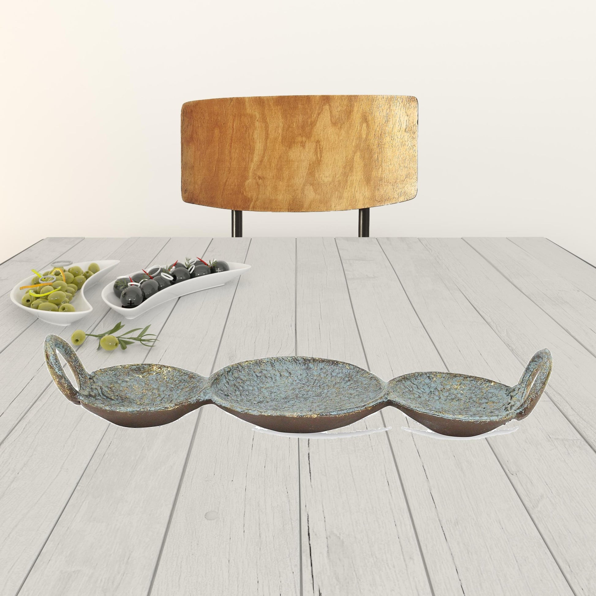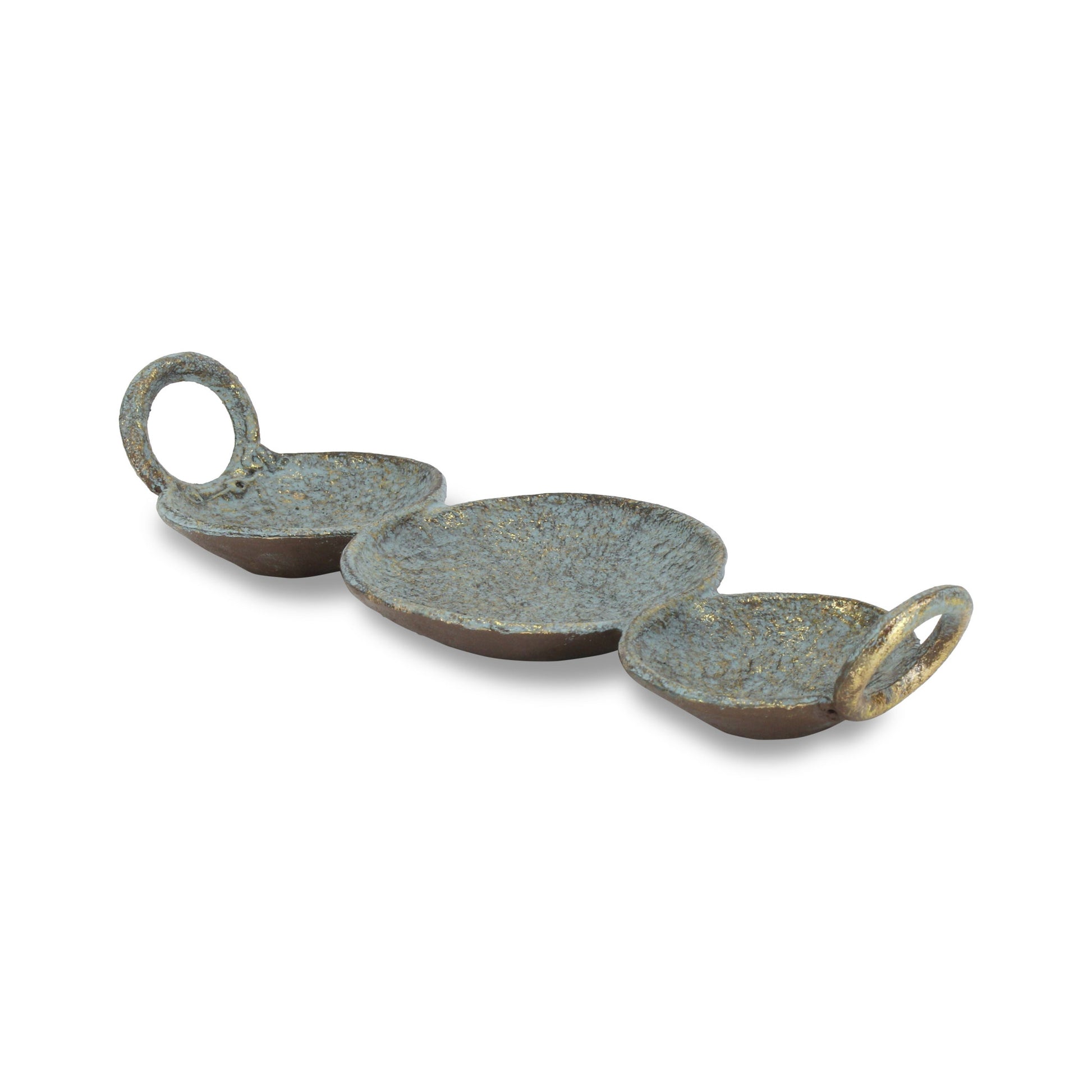 14" Blue Green Tri Circle Metal Handmade Tray With Handles
