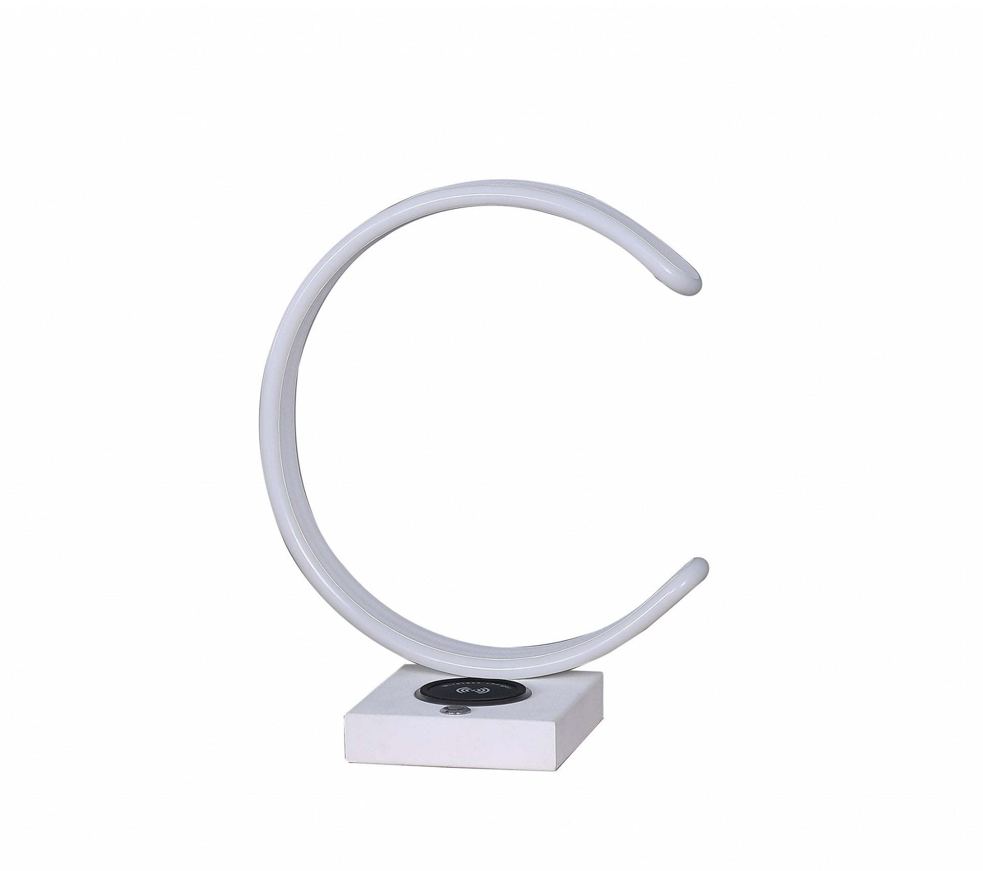 Bring of level of cool style to your space with this good looking 14" white metal led with USB wireless charger table lamp. The base of this lamp is made of metal finished in a white tone in a unique C shape. The white coloring of this lamp adds a delightfully neutral tone to your home and matches with most any decor. This minimalist and contemporary lamp features a built in USB port, touch button dimmer control and a wireless charger all included.  13.5" H x 6.25" W x 10.5" D