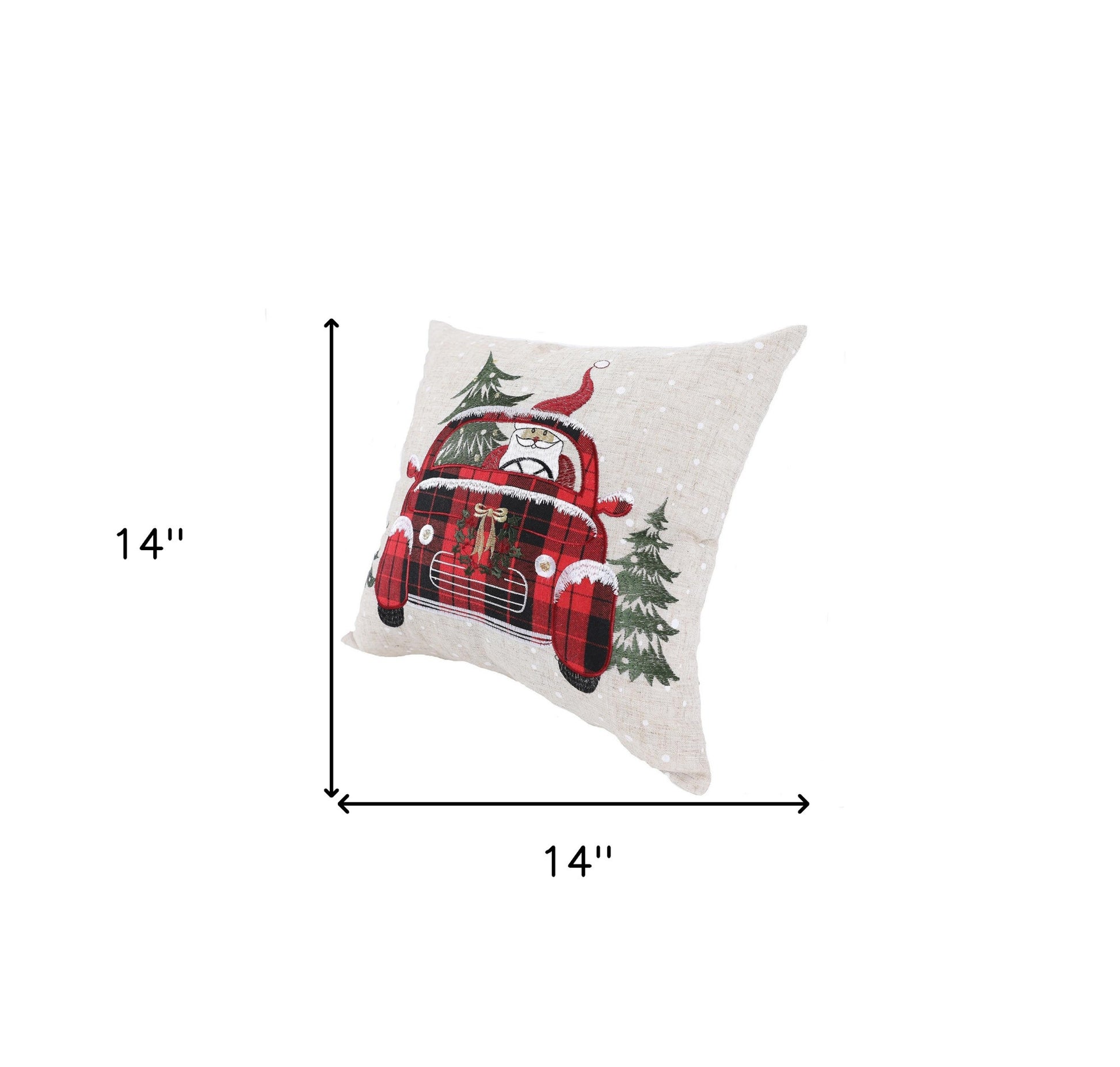 14" X 14" Gray and Red Christmas Holiday Van Linen Blend Zippered Pillow With Embroidery