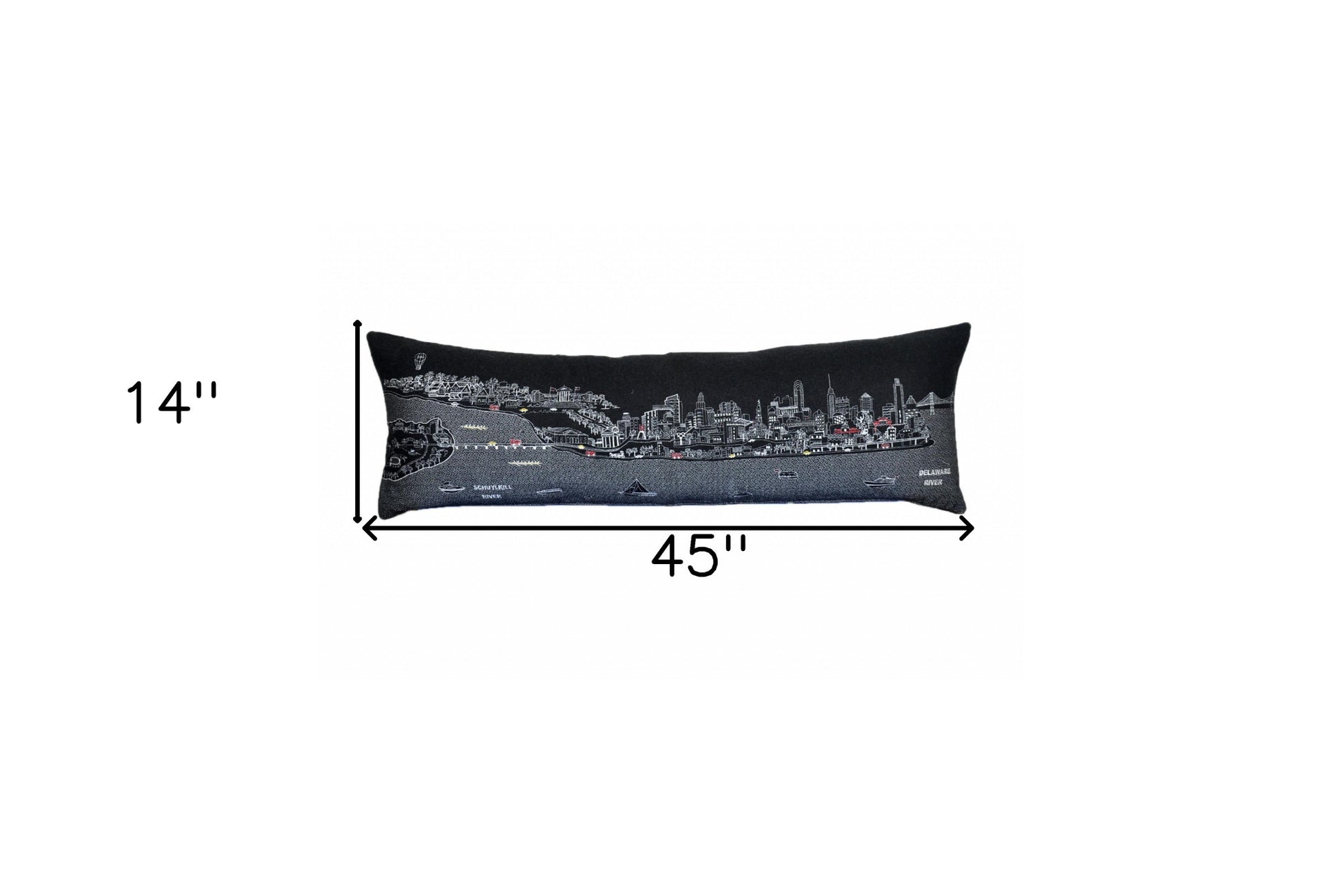 14" X 46" Black Gray and White Wool Zippered Pillow