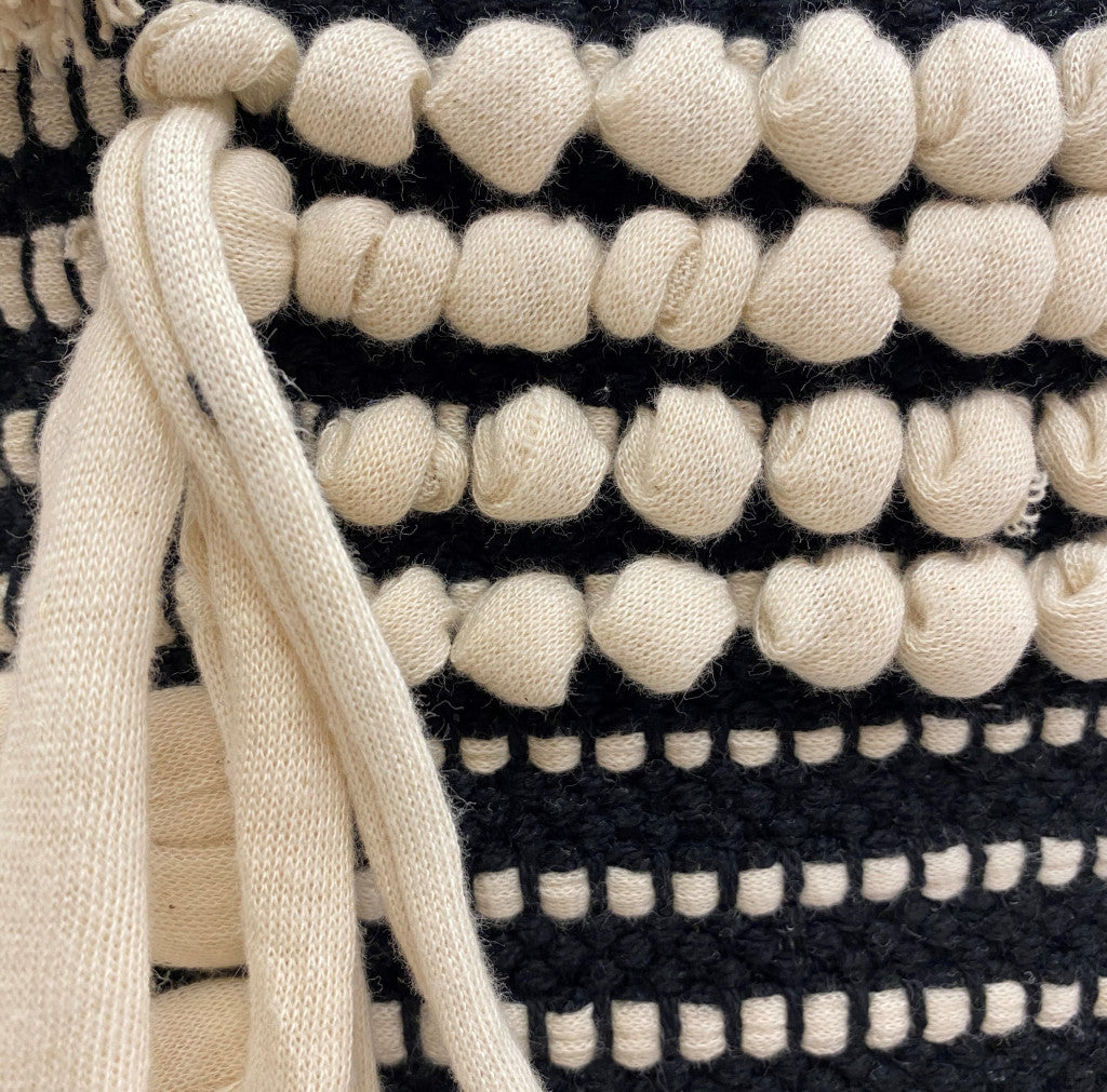 16" Beige And Black Cotton And Natural Round Striped Ottoman