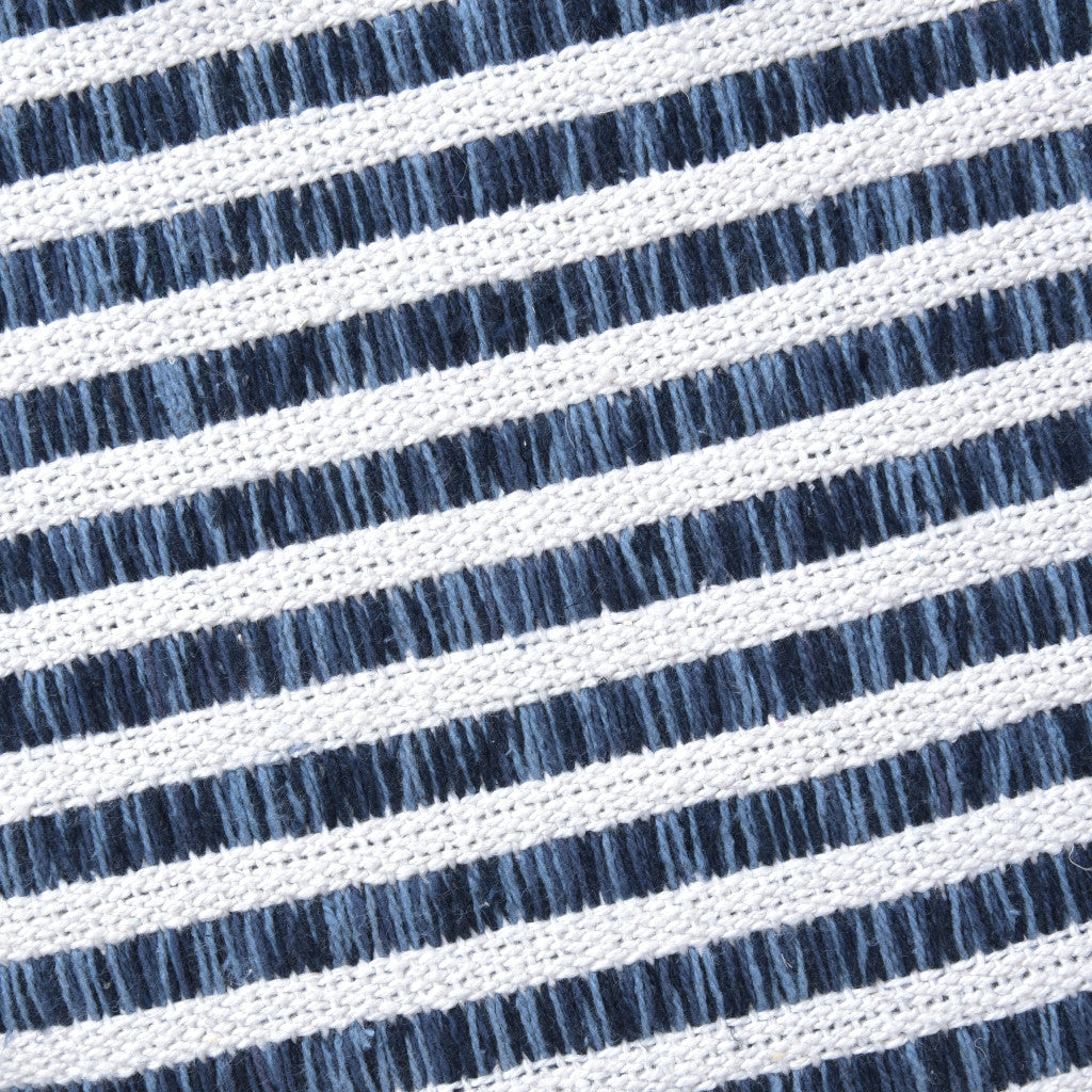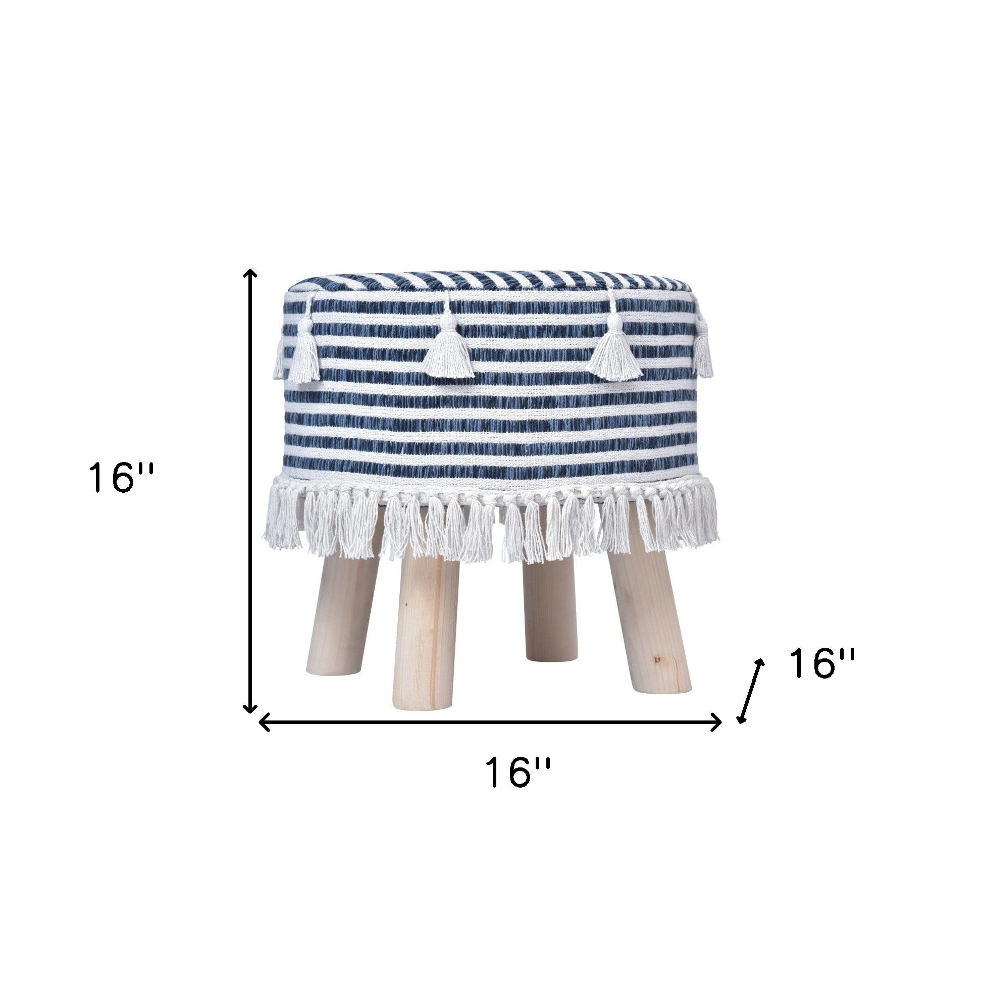 16" Blue And White Cotton And Natural Round Striped Ottoman