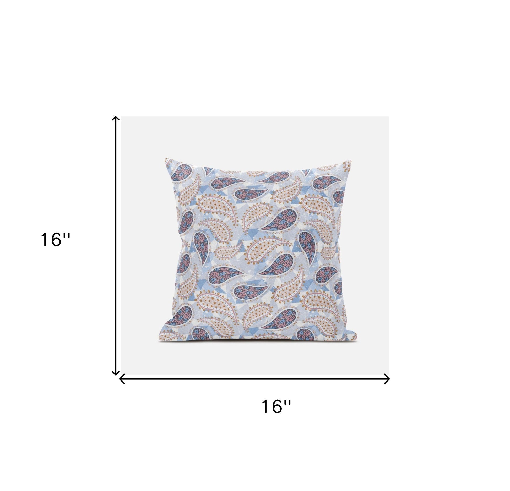 16” Blue Pink Boho Paisley Suede Throw Pillow