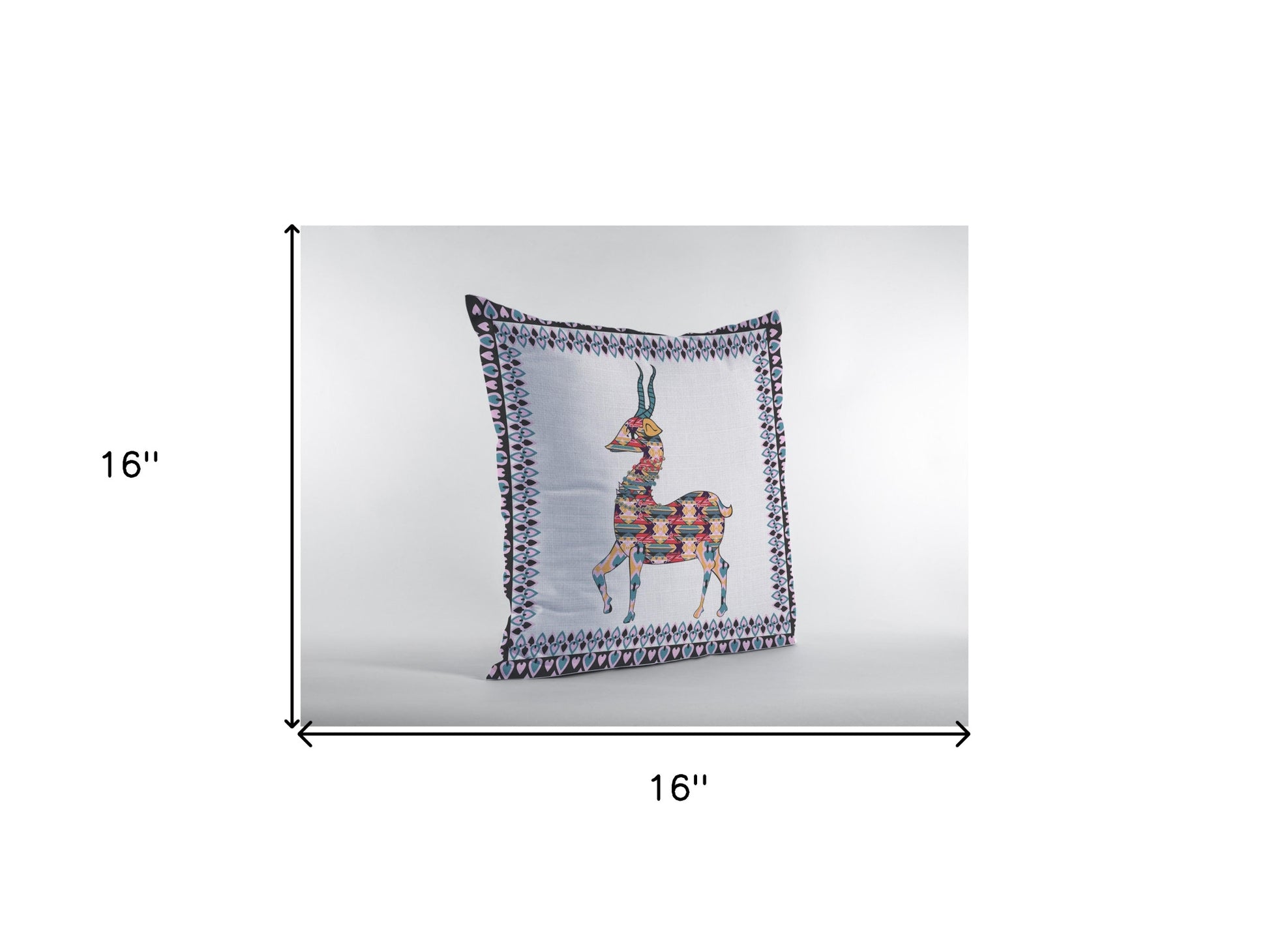 16" Blue White Boho Deer Zippered Suede Throw Pillow