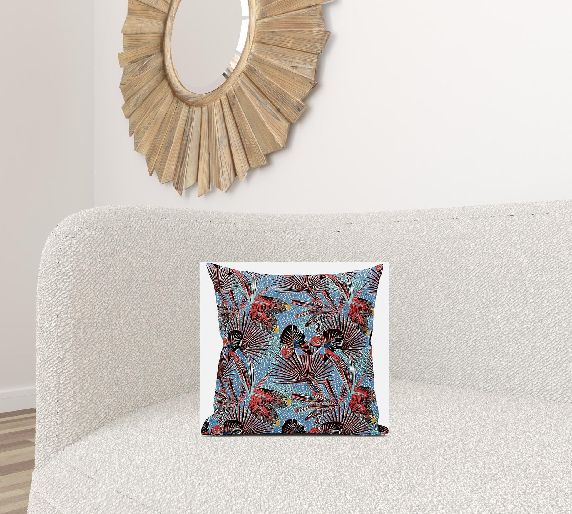 16” Coral Blue Tropical Zippered Suede Throw Pillow