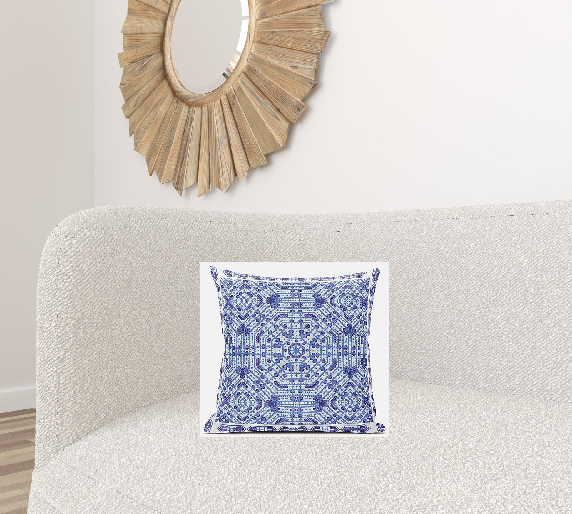 16” Cyan Blue Geostar Zippered Suede Throw Pillow