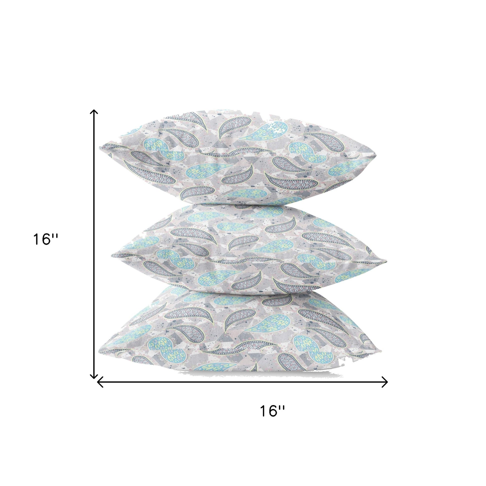 16” Gray Turquoise Boho Paisley Suede Throw Pillow