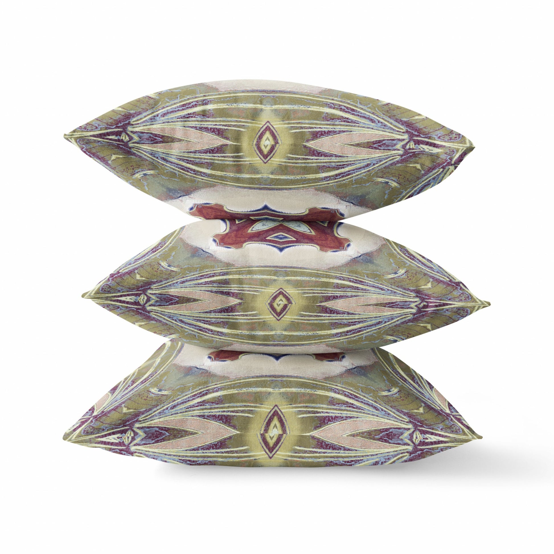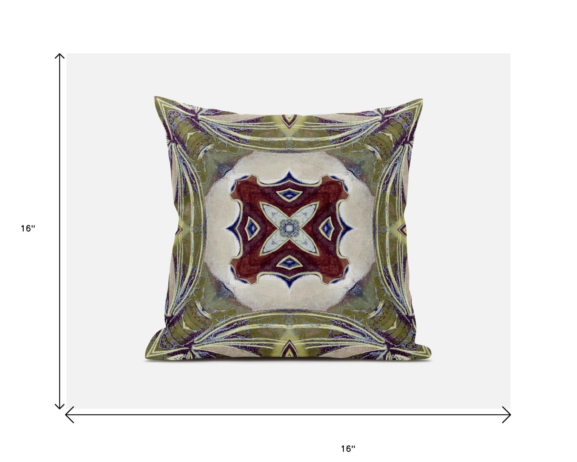 16” Green Brown Geo Tribal Suede Throw Pillow