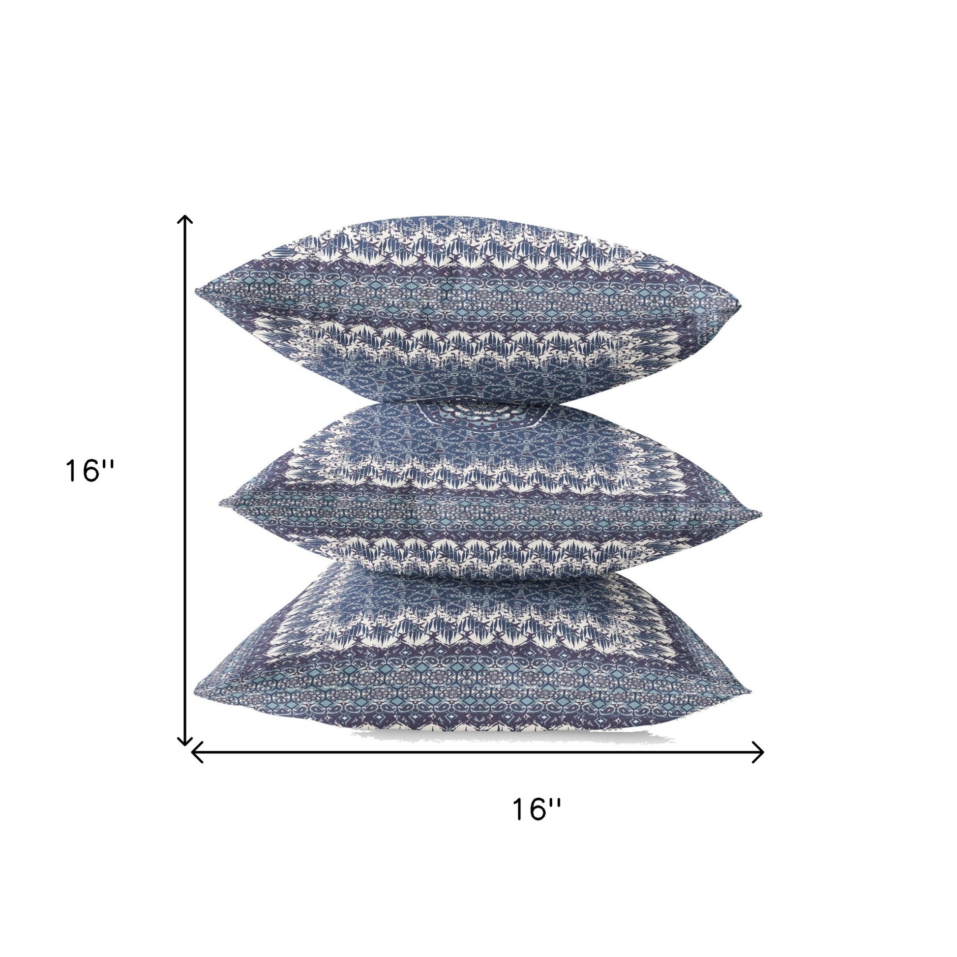 16” Indigo White Holy Floral Zippered Suede Throw Pillow
