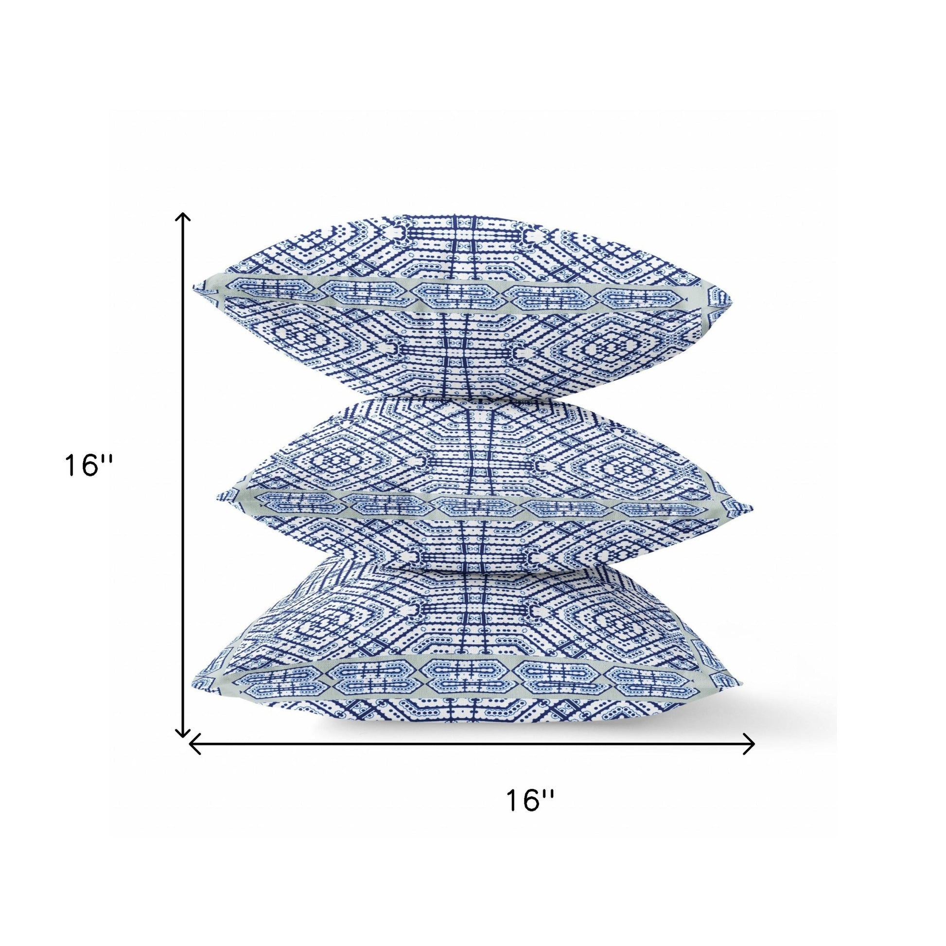 16” Navy White Geostar Zippered Suede Throw Pillow