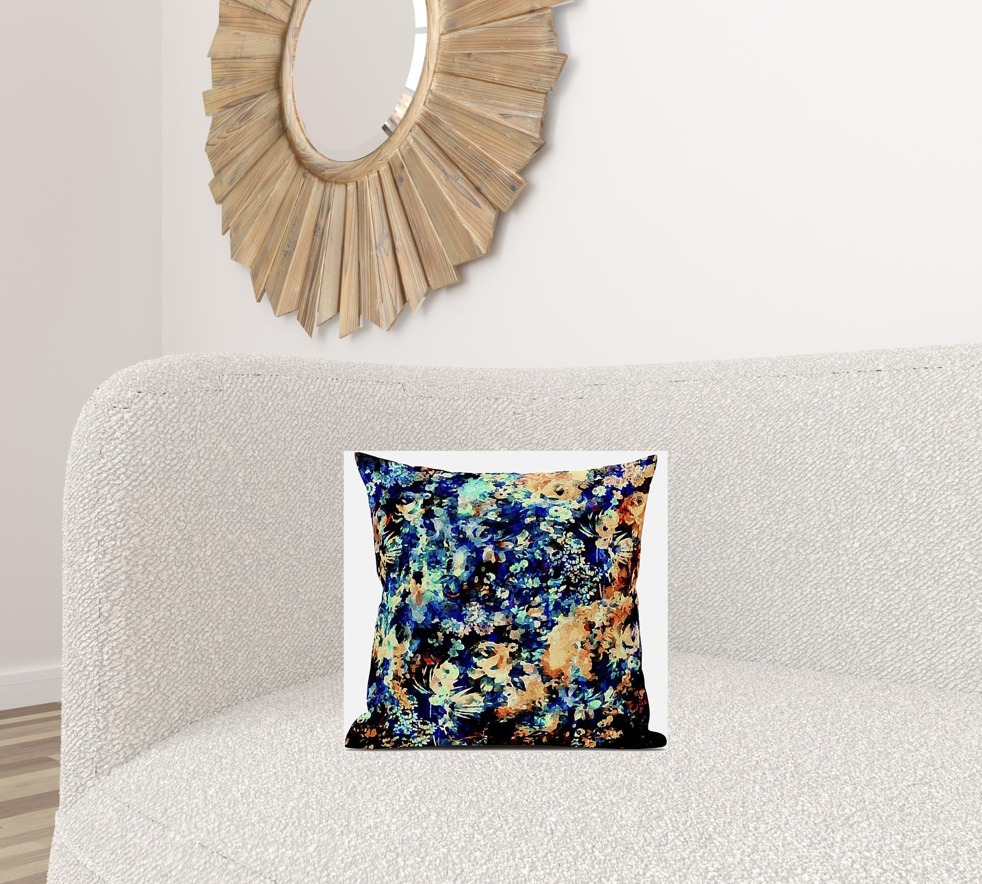 Bask in the soothing freshness of the ocean with this spellbinding Orange Blue Springtime Suede Throw Pillow The overlapping eclectic florals and blotches of color in magnificent shades of turquoise blue, indigo-black, and melon-orange that add a coastal vibe with contemporary essence. The silky smooth and durable suede fabric gives the piece an appealing texture while ensuring enhanced durability to serve you for years. This blown and closed pillow is finished to perfection with a soft and durable polyfill insert for a fluffy appearance, making it an ideal accent piece in terms of fashion and functionality. The beautiful blend of soft and vibrant hues in this stunning decorative pillow makes it an exquisite addition to any contemporary, coastal, or boho-chic home. 16” x 16” x 5”