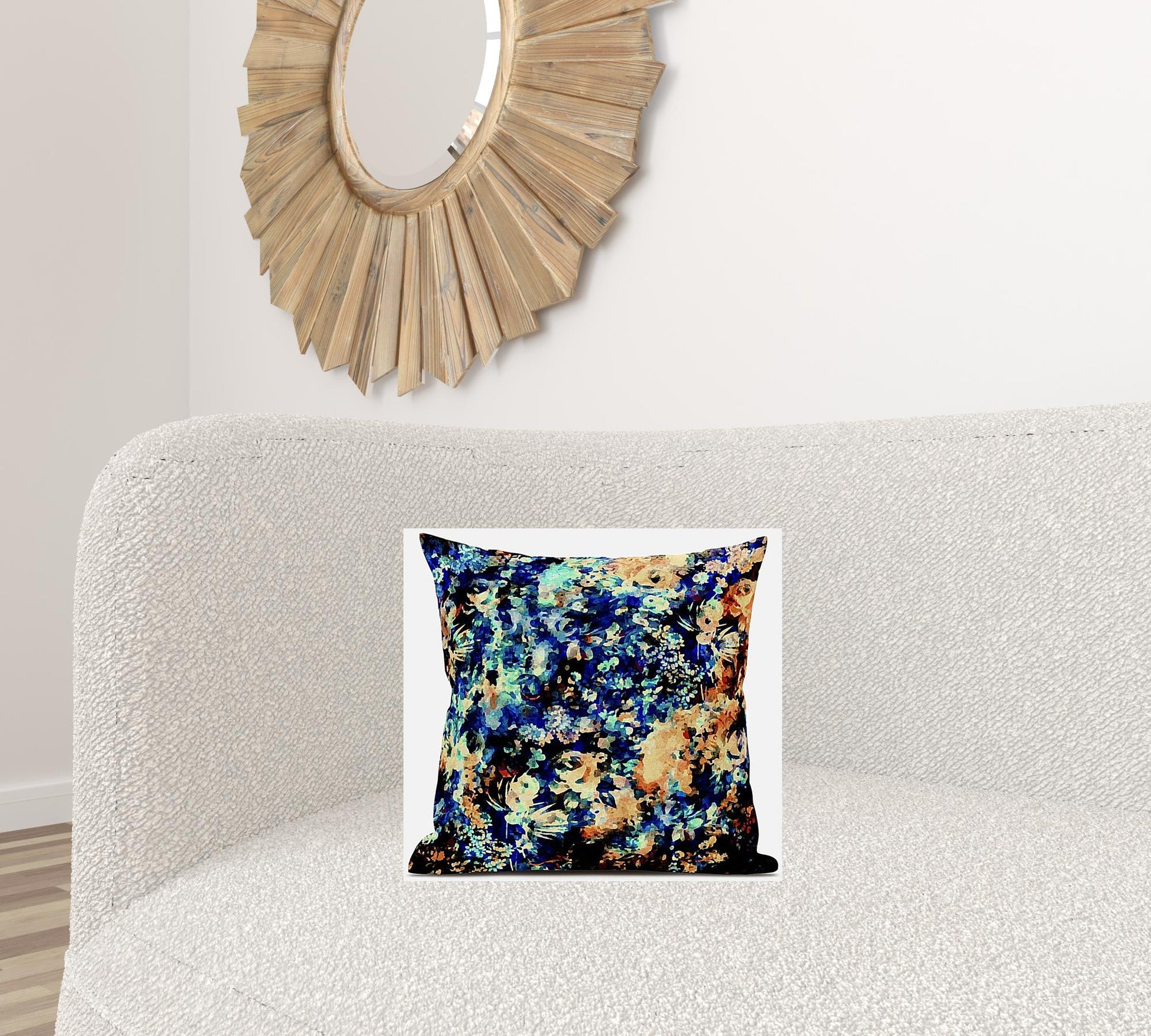 Bask in the soothing freshness of the ocean with this spellbinding Orange Blue Springtime Zippered Suede Throw Pillow. The overlapping eclectic florals and blotches of color in magnificent shades of turquoise blue, indigo-black, and melon-orange that add a coastal vibe with contemporary essence. Made from top-notch suede fabric which is highly durable to last for a long time, while the soft and smooth surface texture provides a glossy sheen for a plush appearance. This pillow is zippered on the cover and comes with a soft polyfill insert to provide optimum comfort and a smooth finish with added fluffiness. The beautiful blend of soft and vibrant hues in this stunning decorative pillow makes it an exquisite addition to any contemporary, coastal, or boho-chic home. 16” x 16” x 5”