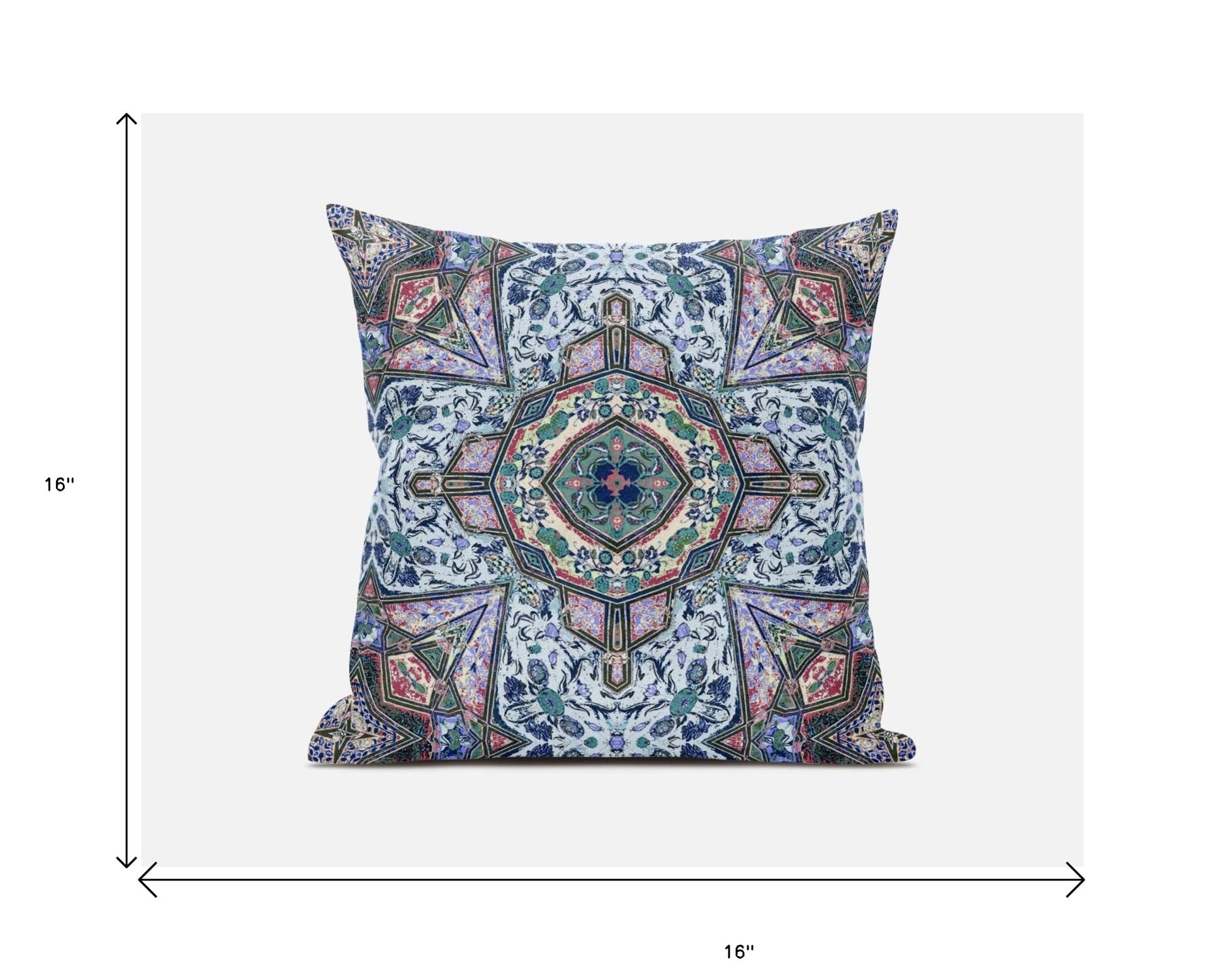 16" Pale Blue Pink Floral Medallion Suede Throw Pillow