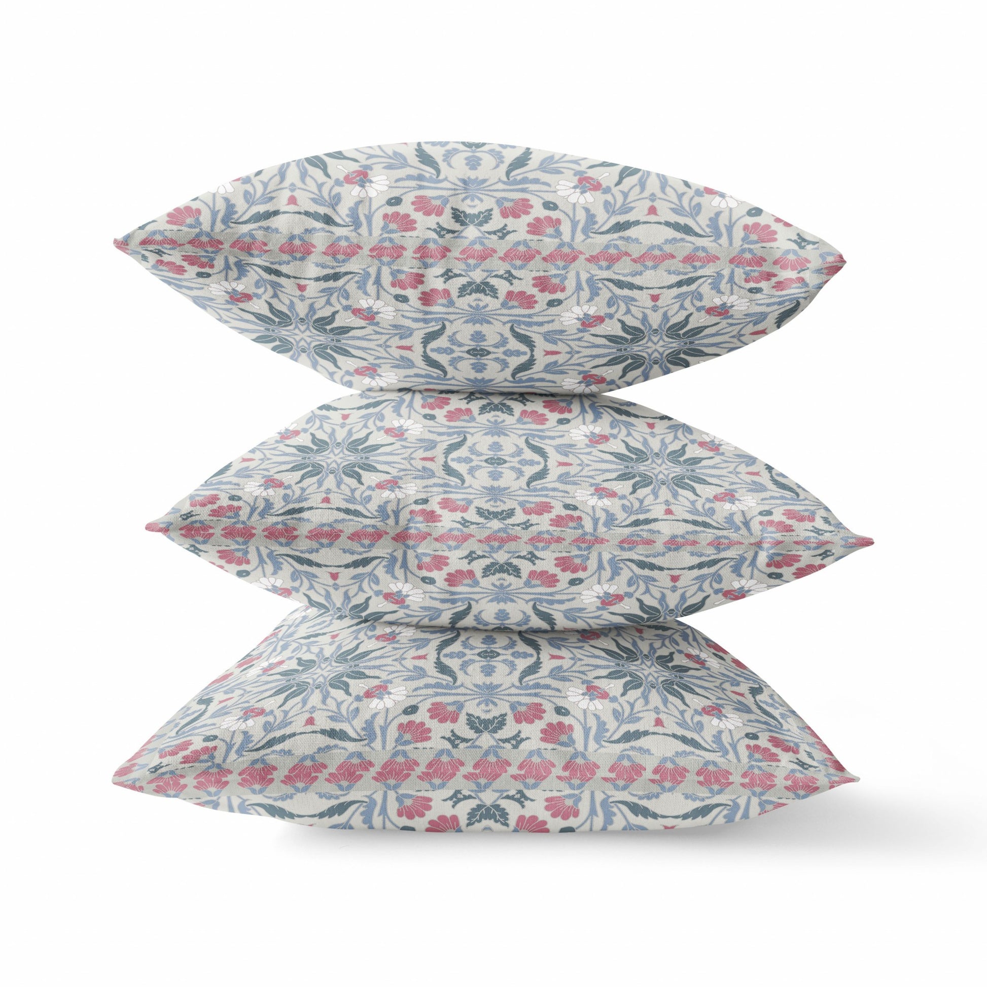 16” Pink Gray Paisley Zippered Suede Throw Pillow
