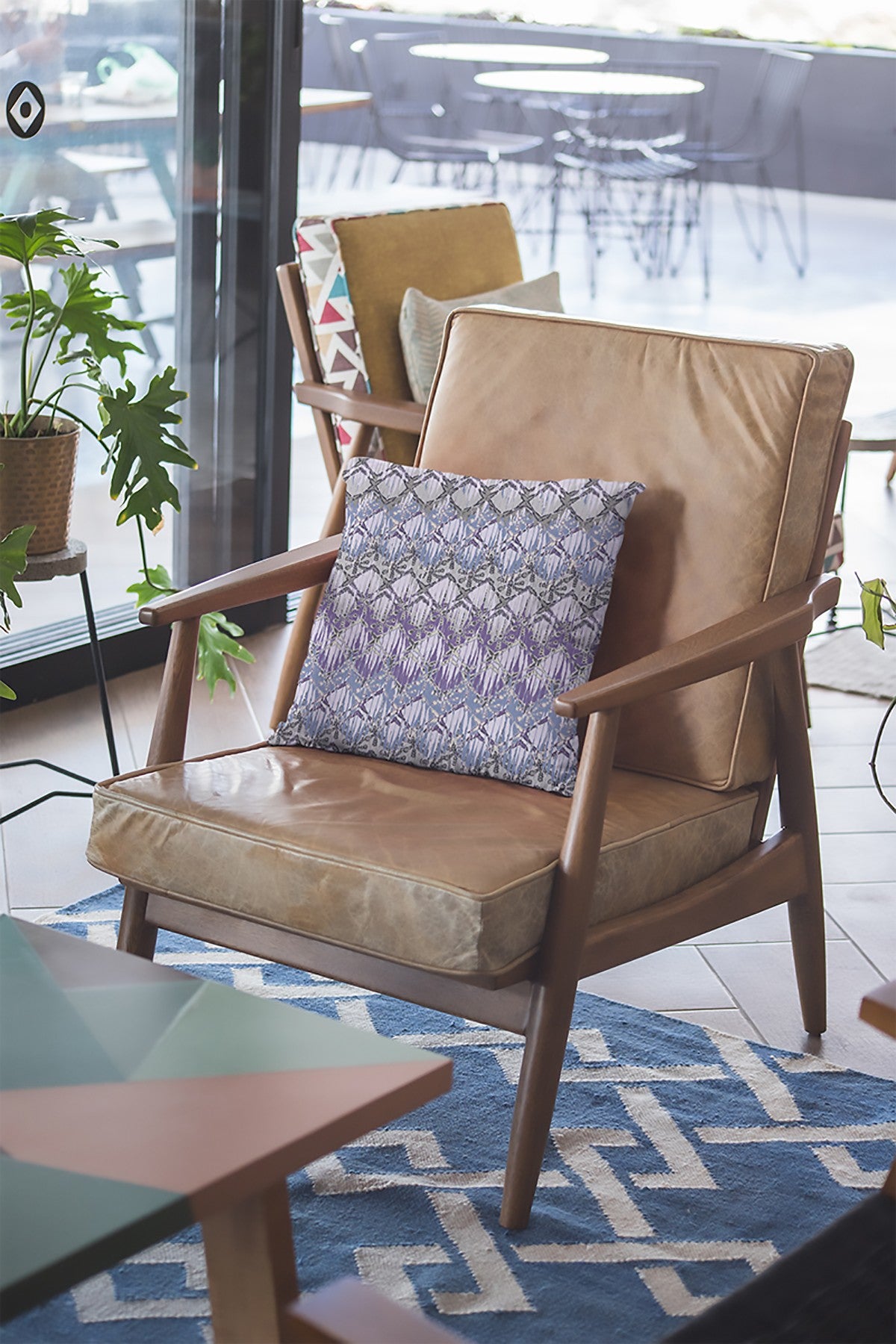 This visually rich Purple Gray Hatch Zippered Suede Throw Pillow will be a unique addition to your bohemian decor. Featuring zig-zag hatch-like patterns in cool-toned purple, gray, and ice blue, this pillow will induce a calm and relaxing atmosphere in the room. The sleek and smooth suede fabric’s presence provides this cushion with a sumptuous and opulent look while ensuring long-lasting durability to serve you in the coming years with satisfaction. Featuring a soft polyfill insert, this throw pillow is very fluffy, super comfortable, and cuddly, while the seamless zipper and removable cover make it hassle-free to clean. Combining a cool-toned palette with a classic pattern, this decorative pillow is sure to add a blissful bohemian touch to your interior décor. 16” x 16” x 5”