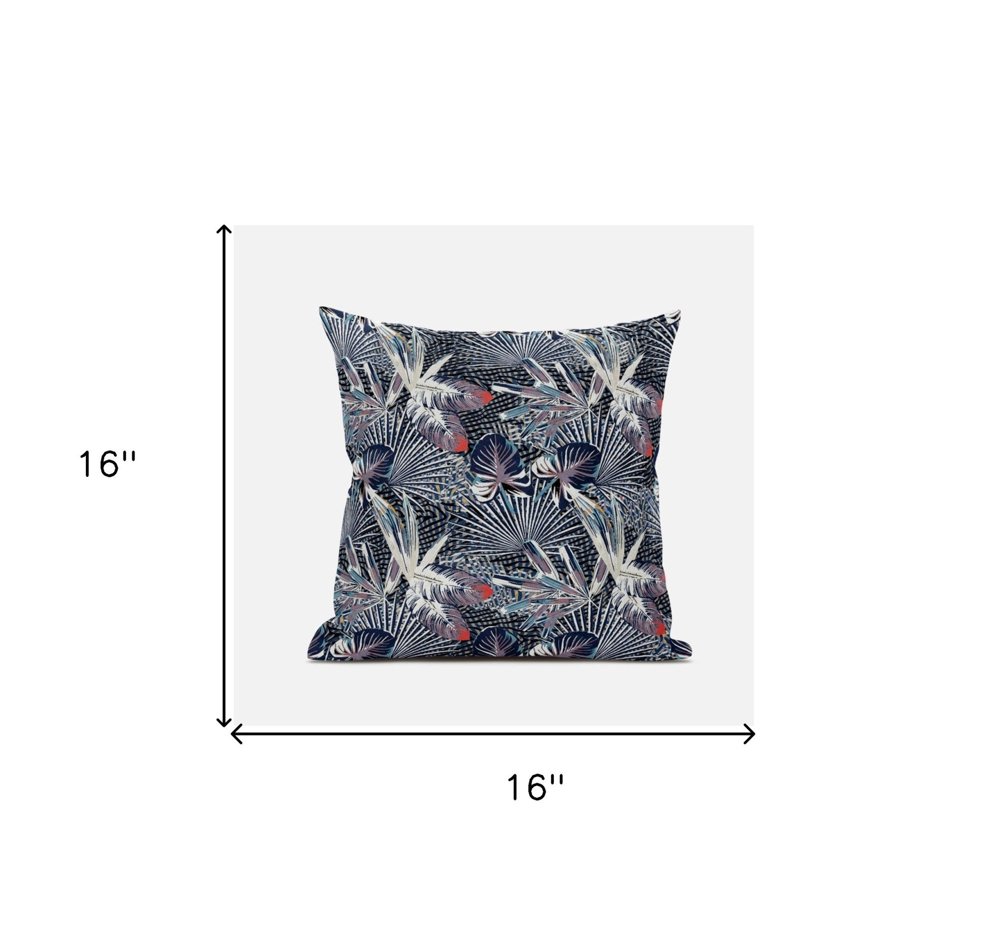 Balancing botanical elements with a bold color palette, this stunning Purple Indigo Tropical Suede Throw Pillow carries the essence of boho to layer into your coastal home. Flaunting an elaborate print of tropical leaves in a shroud of dusky purple, indigo, and white forming a canopy over an indigo-gray base, the pillow stands out as the attention-grabbing piece in any room. Crafted with the finest suede fabric, the decorative pillow is made to be eco-friendly, easy to clean, and very durable with a silky smooth surface texture. This blown and closed pillow comes with a durable polyfill insert that makes it super soft and comfortable with a luxurious fluffy look. Accentuate the coastal aesthetics in your home with the awe-inspiring print of this decorative throw pillow that can instantly transport the interior style to a tropical paradise. 16” x 16” x 5”