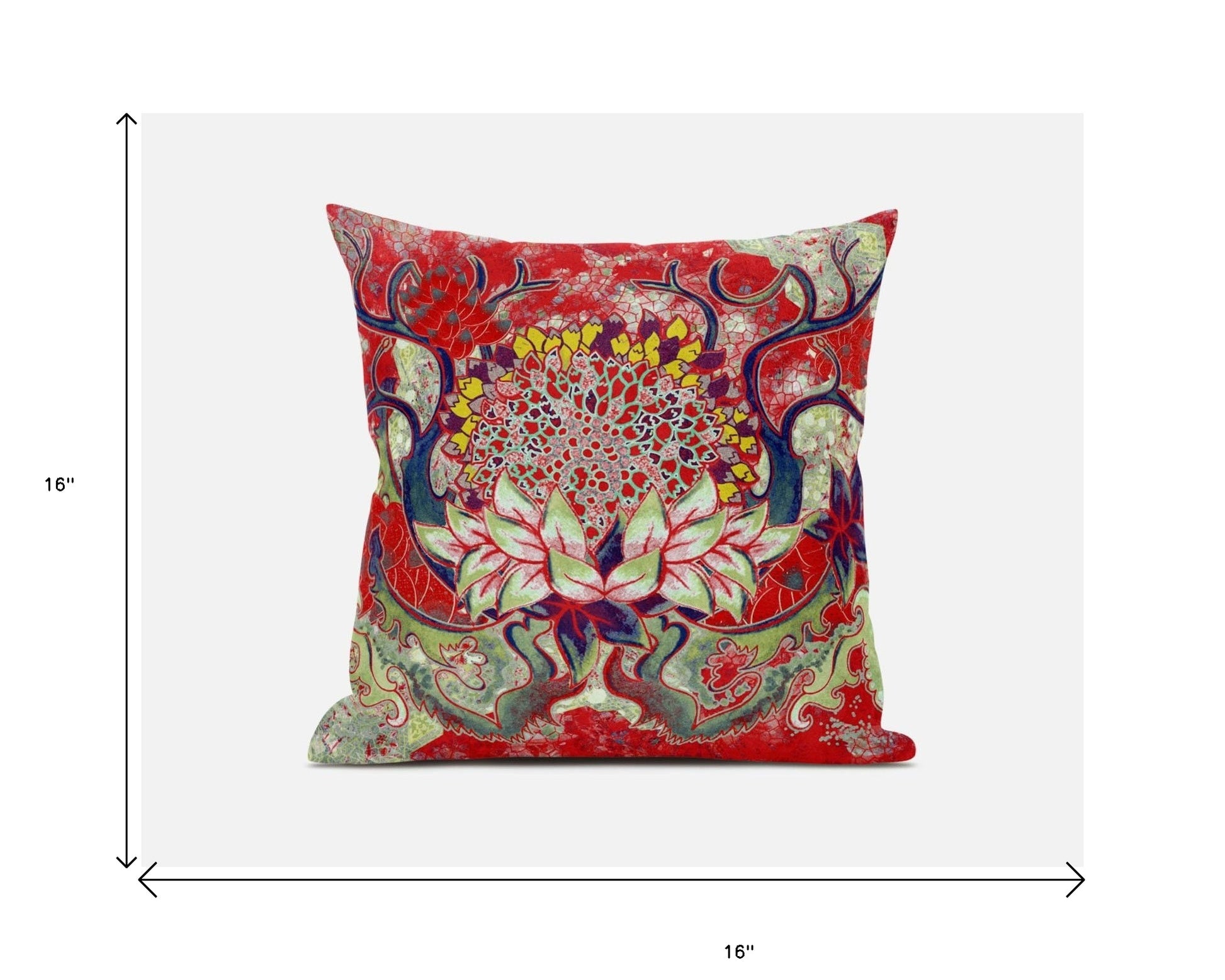 Give your living space an eye-catching centerpiece with this Red Green Flower Bloom Suede Throw Pillow that features a burst of warm tones to create a captivating illustration. Brimming with mint green vines and creepers centering an enigmatic floral bloom in yellow, cyan, and red, the pillow hosts a mystical gateway to an enchanting forest. Made from high-quality suede fabric for enhanced durability and softness with a soft and smooth surface texture that feels luxurious on the touch. This pillow is blown and closed with a durable polyfill insert which gives the piece a plush and fluffy look, making it ideal for resting or sleeping with utmost comfort. Add pops of colors to your modern space with this beautiful decorative pillow placed against neutral or bold-toned decors. 16” x 16” x 5”