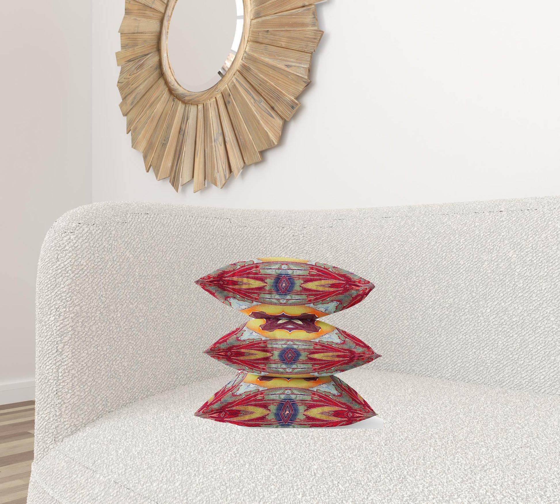 16” Red Yellow Geo Tribal Suede Throw Pillow