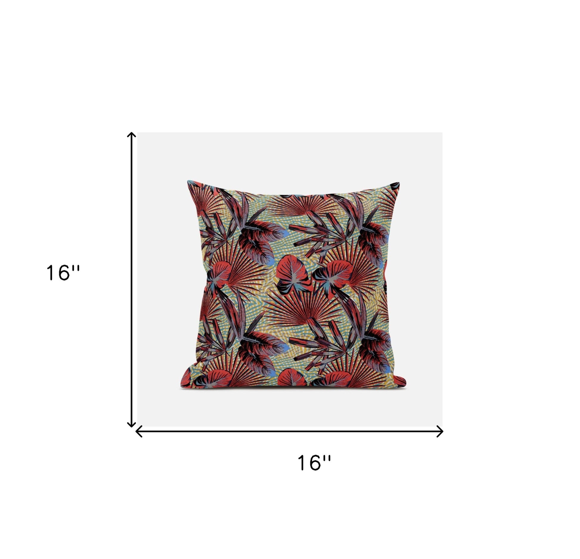 16” Red Yellow Tropical Zippered Suede Throw Pillow