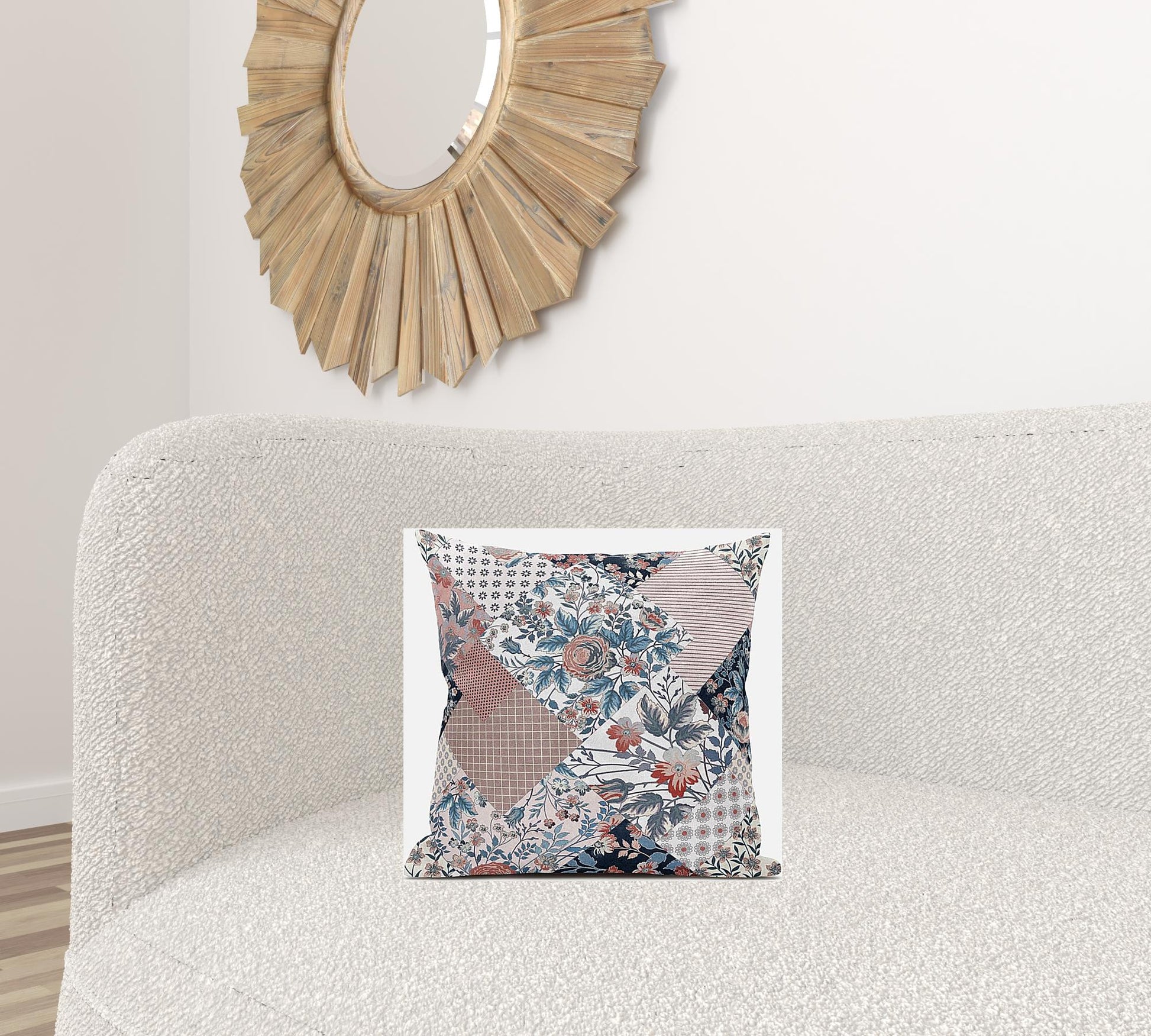 Accentuate a bohemian aesthetic into your home with this White Pink Floral Suede Throw Pillow that exhibits a subtle yet eye-catching composition to anchor your living space. The high-quality floral and geometric digital prints in light peachy pink and slate blue create a pleasant contrast over the white base, making this an ideal accent for a wide variety of interior settings. Crafted in the United States with premium suede fabric for softness and durability. The glossy sheen and luxurious texture of the suede offer a smooth and luxurious finish for ultimate style and comfort. This pillow is blown and closed with a high-quality polyfill insert for a plush appearance with extra fluffiness. Whether you want this throw pillow in your bedroom, living room, or sitting space, it will seamlessly blend in without overwhelming its surrounding. 16” x 16” x 5”
