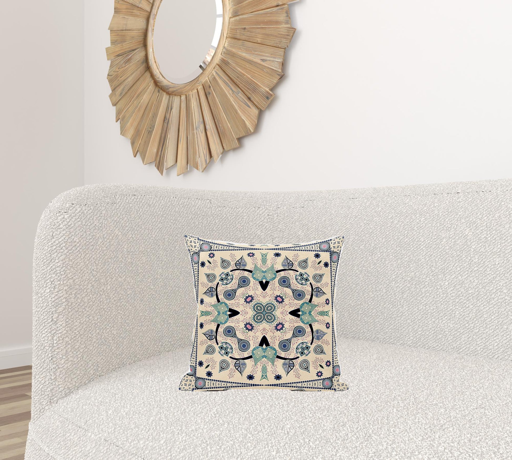 16" X 16" Beige and Black Broadcloth Paisley Zippered Pillow