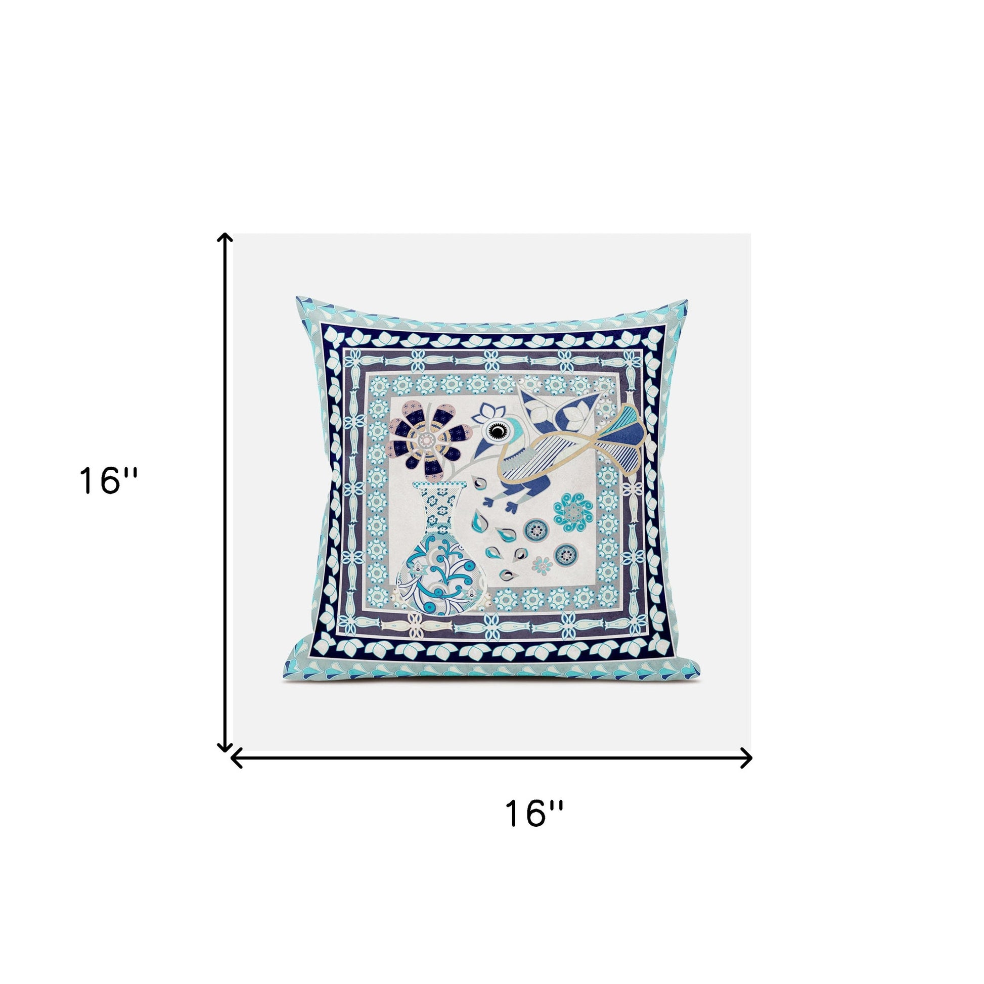 16" X 16" Beige and Black Peacock Broadcloth Floral Zippered Pillow