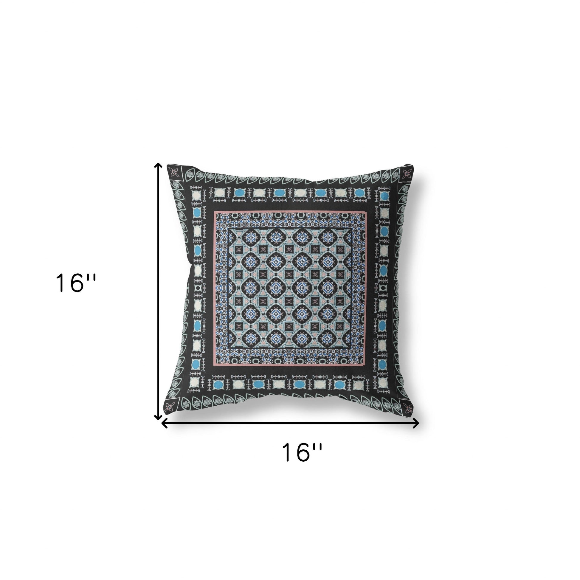 16" X 16" Black And Blue Floral Blown Seam Suede Throw Pillow