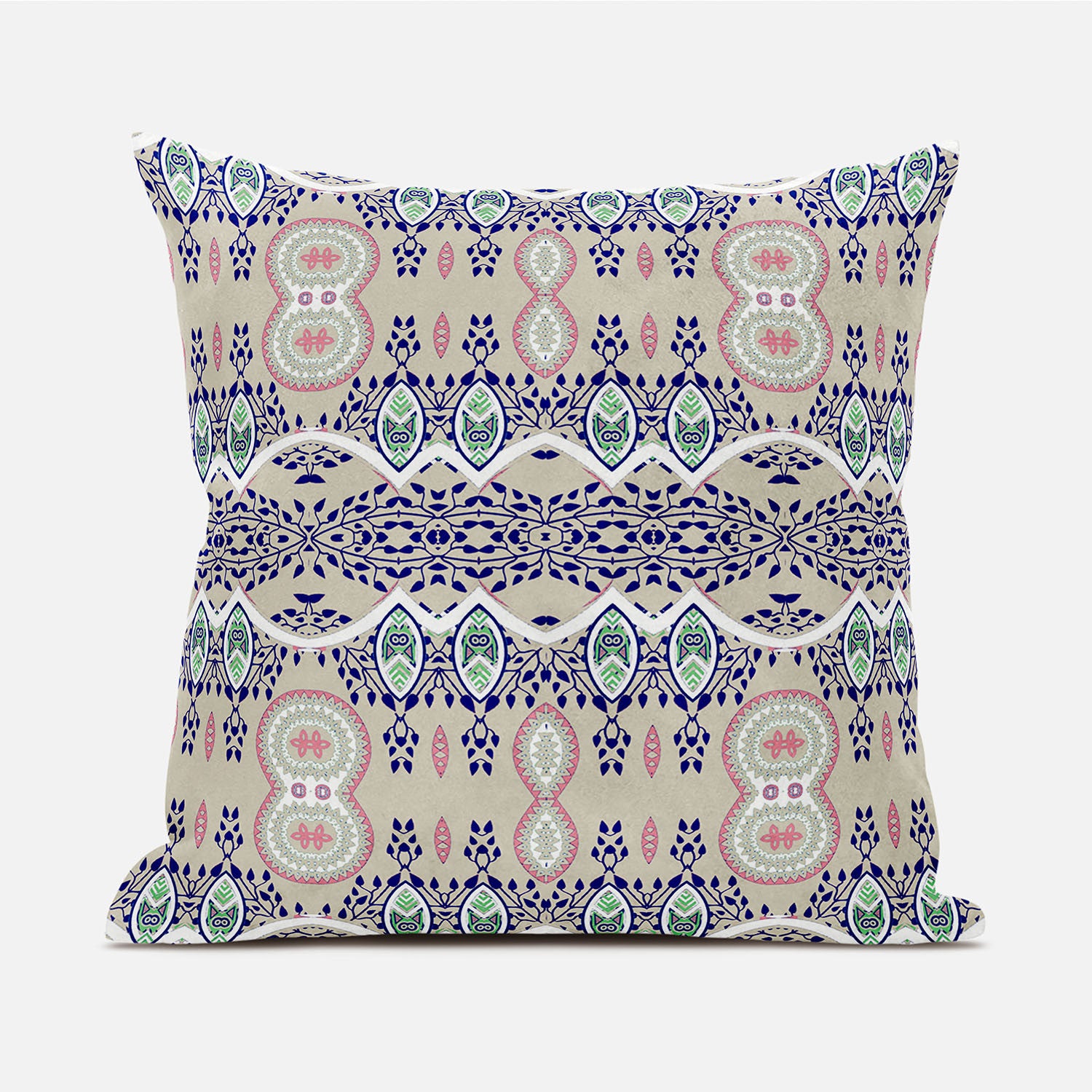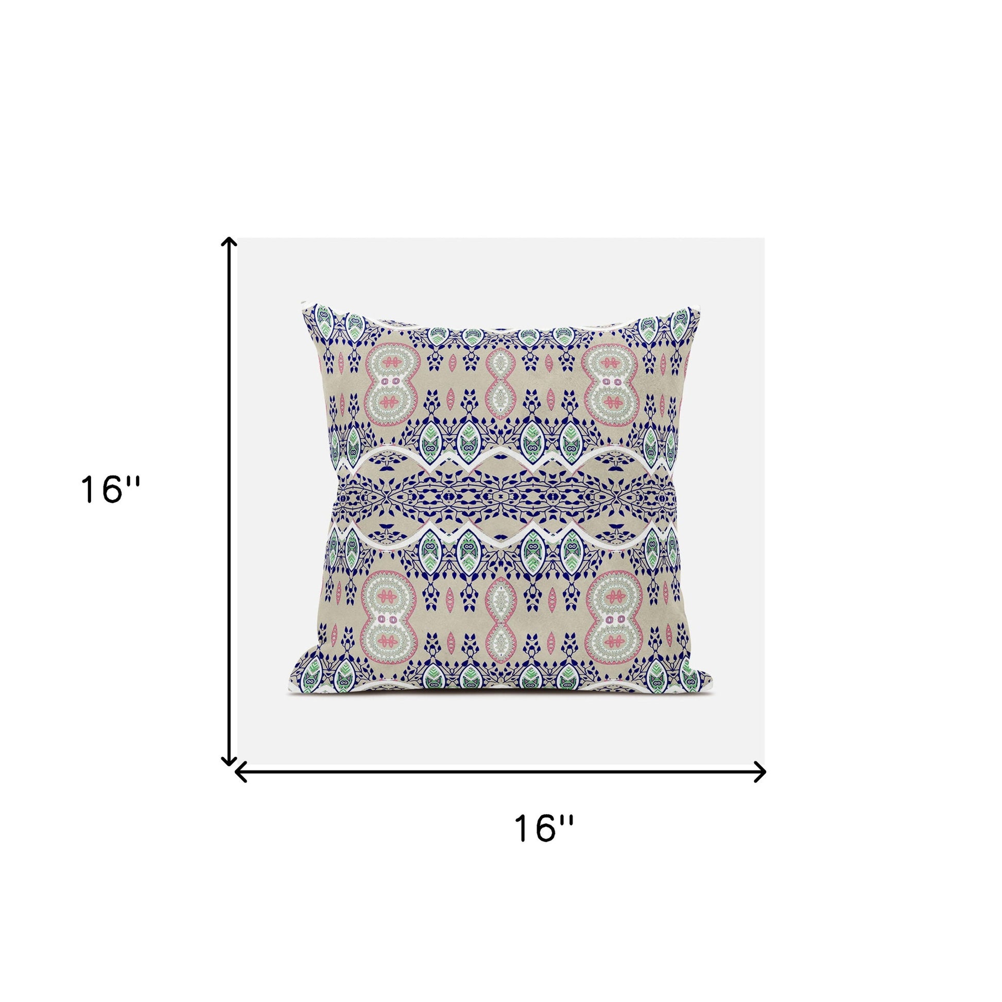 16" X 16" Blue and Beige Broadcloth Paisley Zippered Pillow
