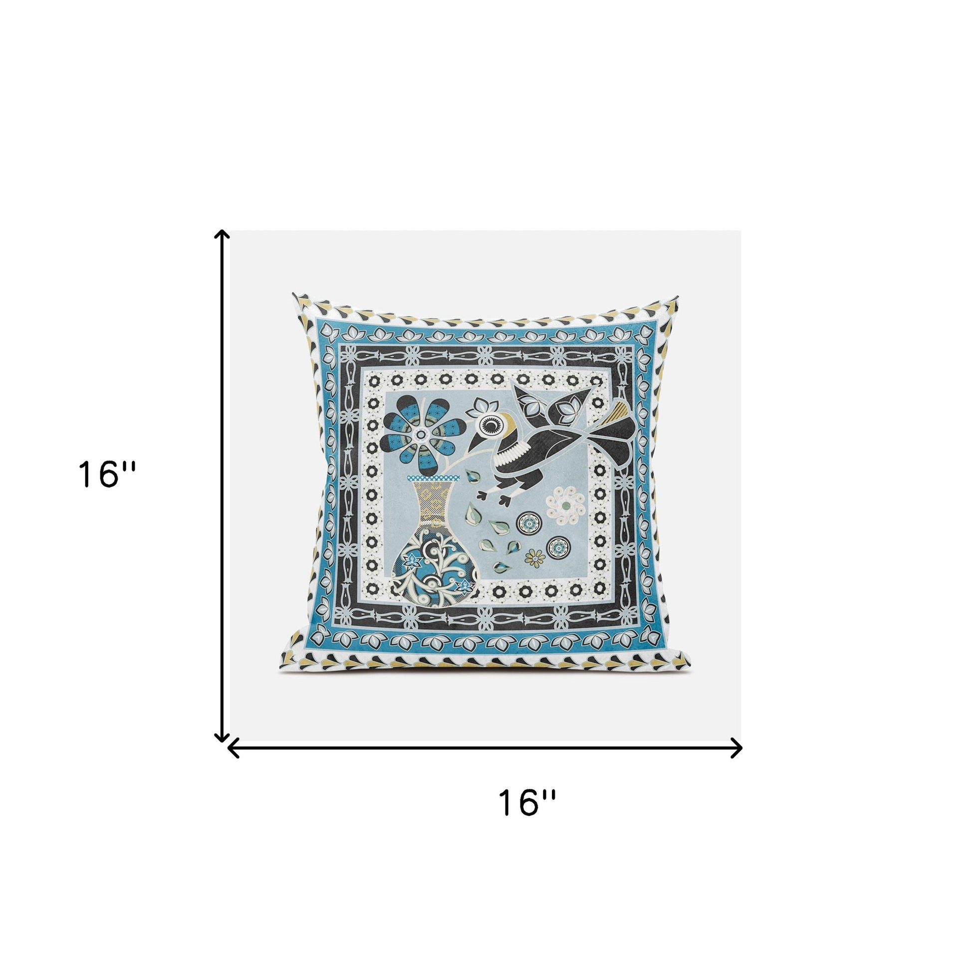 16" X 16" Blue and Black Peacock Broadcloth Floral Zippered Pillow
