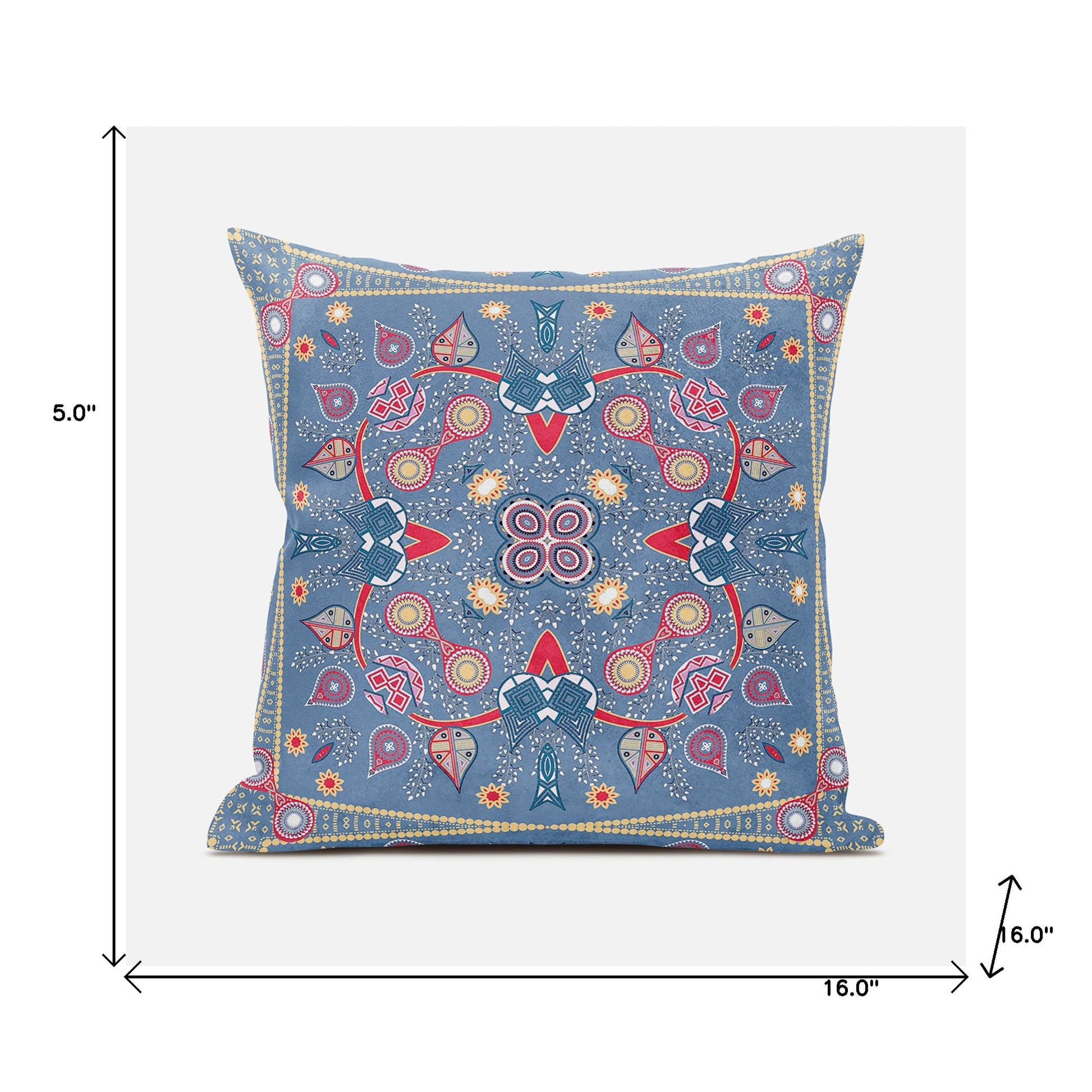 Add an air of fashion to your room and rejuvenate the space with this cute and fashionable 16" x 16" blue and gold broadcloth paisley zippered pillow. The blue and gold coloring of the extremely durable and long lasting broadcloth will add dimension and texture to your space. For anyone that loves to decorate or accent their space with color and texture. A great decorative accessory for your favorite chair, to accent your sofa, or to use as part of your bed ensemble. 5" H x 16" W x 16" D