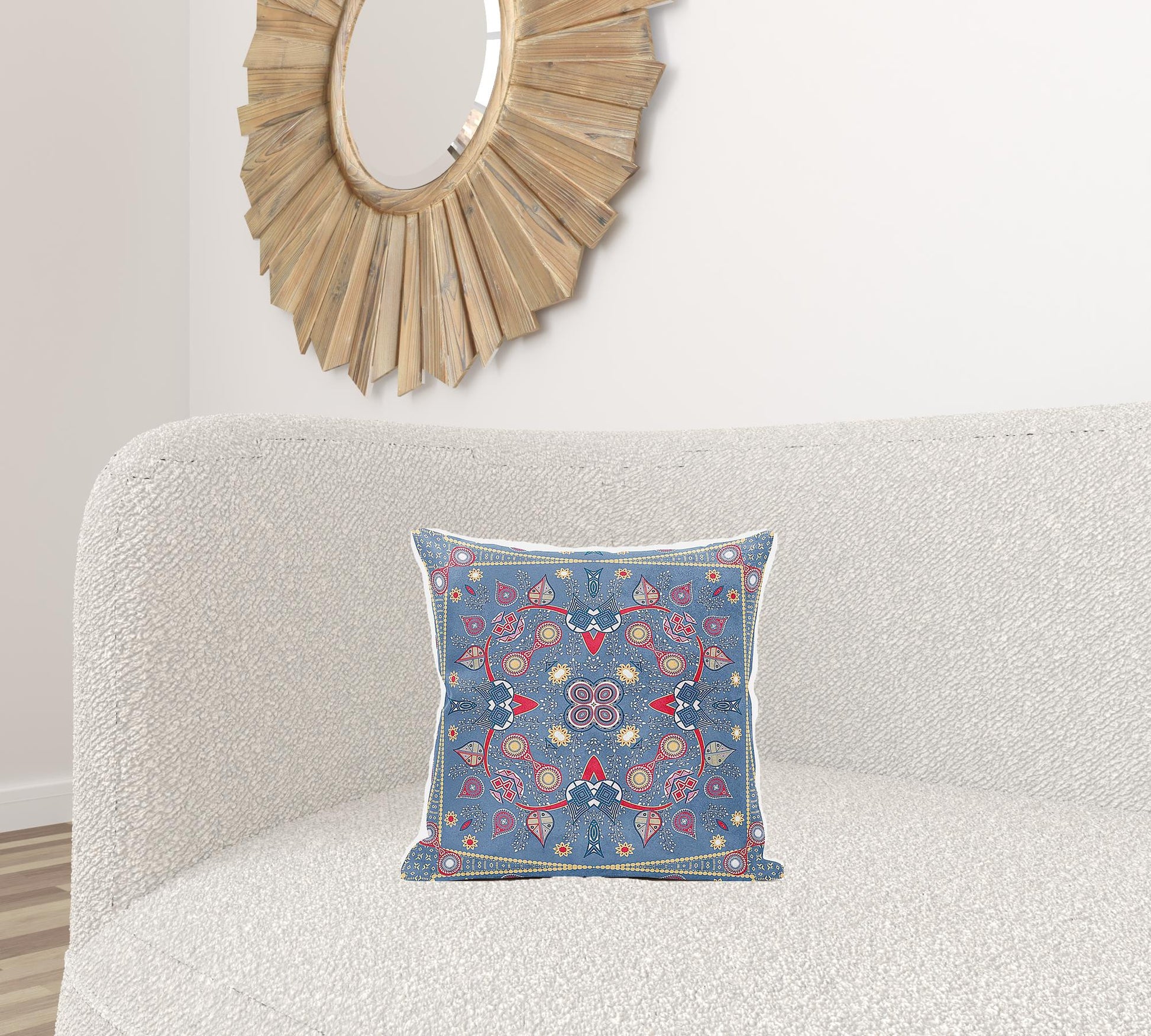 16" X 16" Blue and Gold Broadcloth Paisley Zippered Pillow