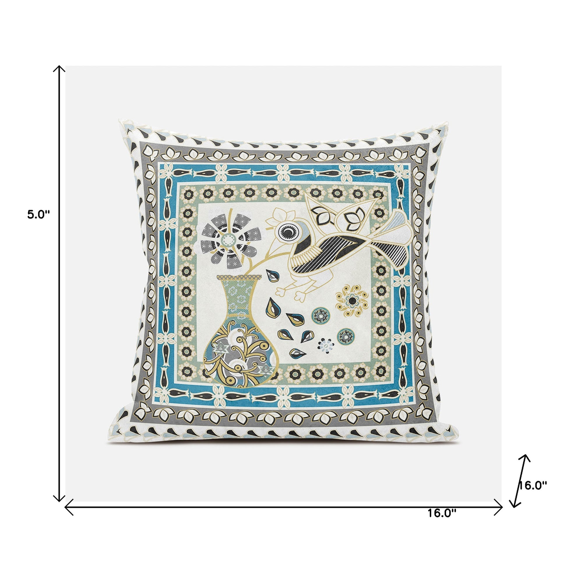Bring a bit of fashion and zip to your space with this eye-catching and comfy 16" x 16" blue and off white peacock broadcloth floral zippered pillow. This blue and off white hued piece represents quality construction, expertly made from durable broadcloth that is not only long lasting but soft to the touch as well. Great to use on its own or mix with other decorations for the perfect look. A great decorative accessory for your favorite chair, to accent your sofa, or to use as part of your bed ensemble. 5" H x 16" W x 16" D