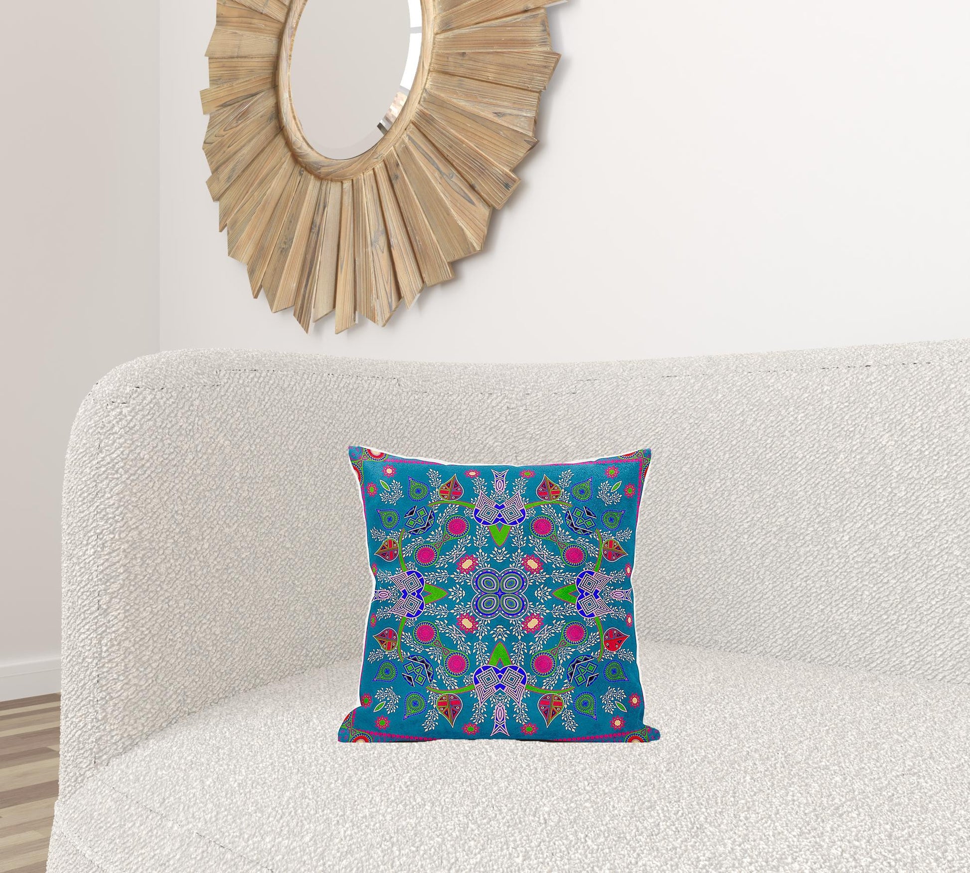 16" X 16" Blue and Pink Broadcloth Paisley Zippered Pillow