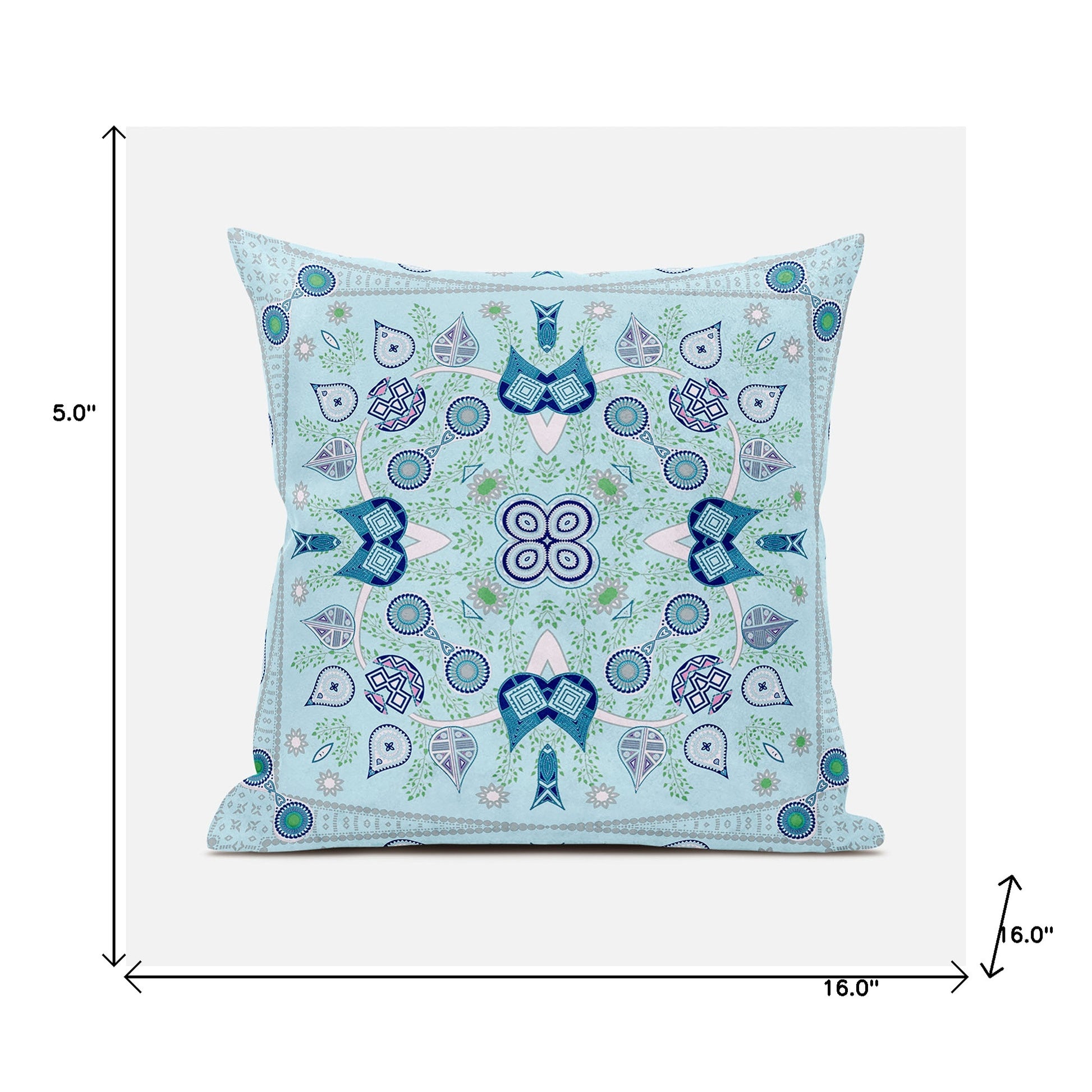 This 16" x 16" blue and white broadcloth paisley zippered pillow will add a beautiful decorative accent to your decor. This soft and durable decorative pillow is expertly made of high grade, long lasting broadcloth in a blue and white coloration. Great to use on its own or mix with other decorations for the perfect look. A great decorative accessory for your favorite chair, to accent your sofa, or to use as part of your bed ensemble. 5" H x 16" W x 16" D