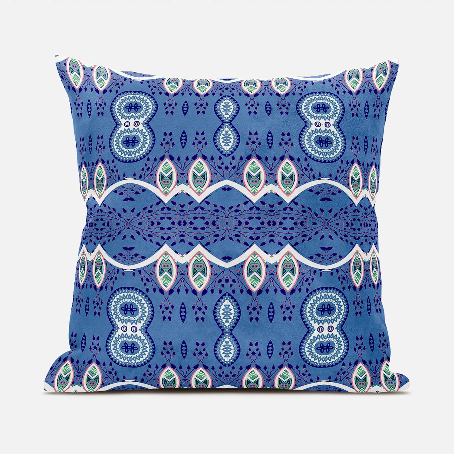 16" X 16" Blue and White Broadcloth Paisley Zippered Pillow